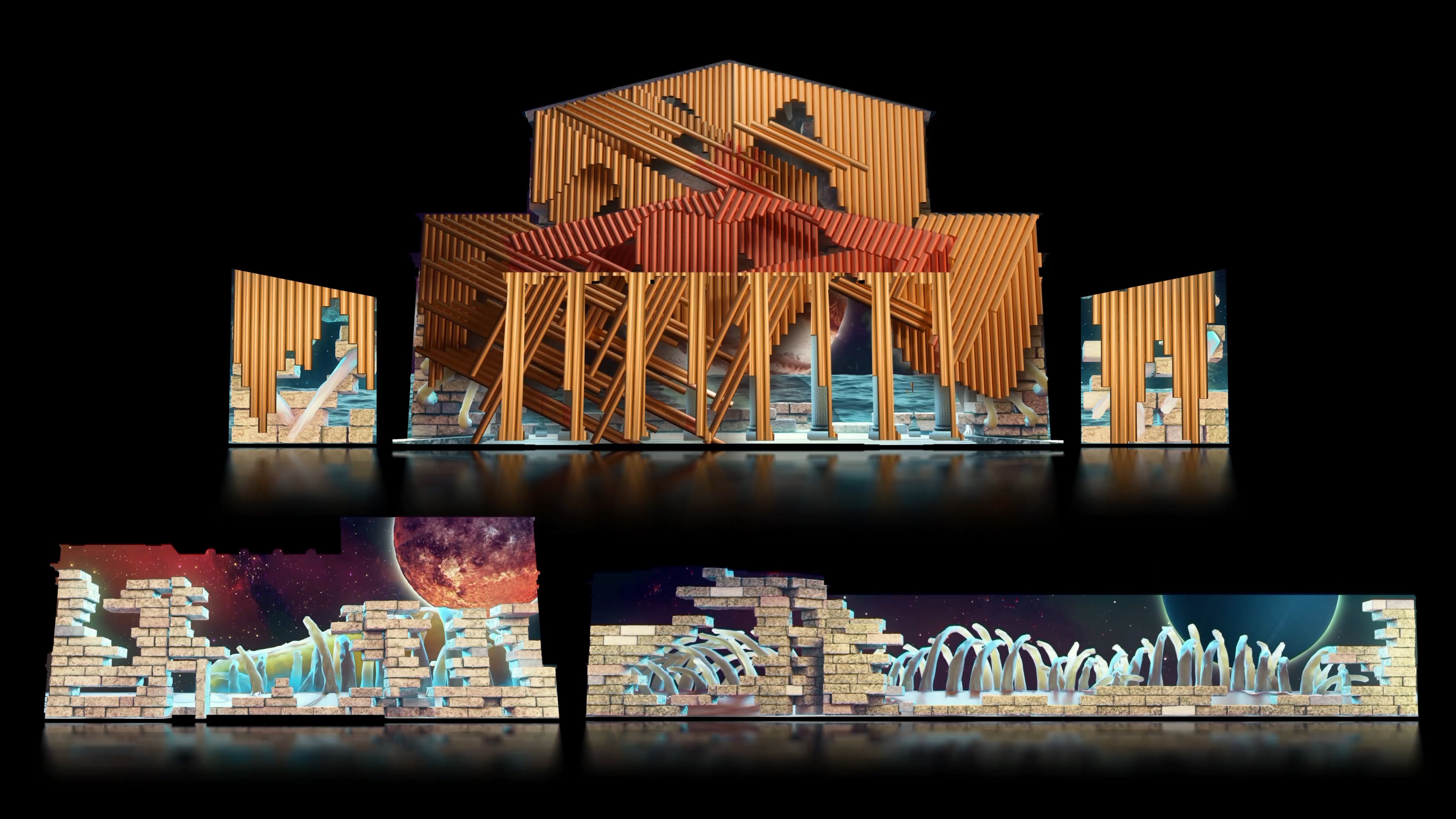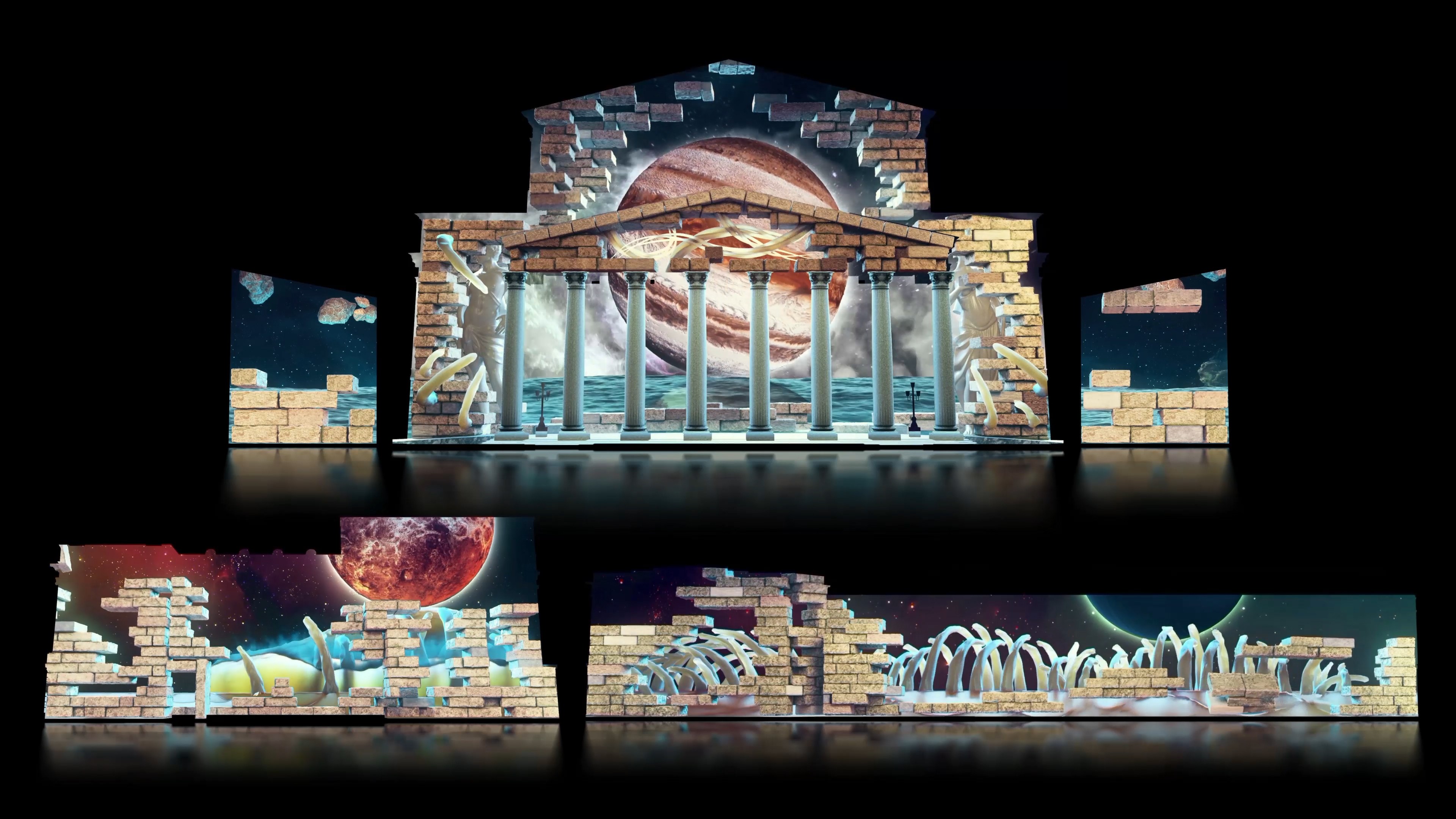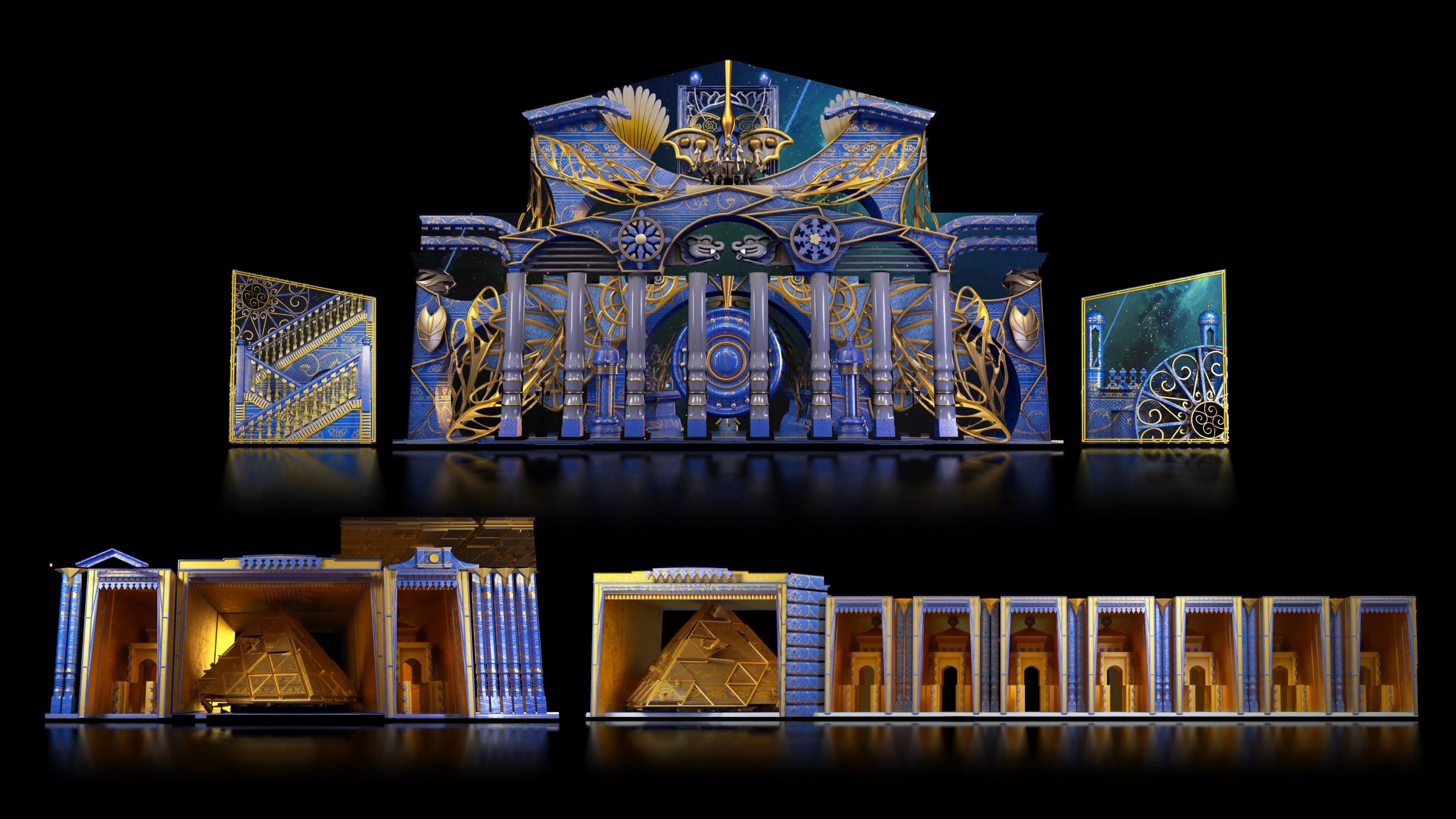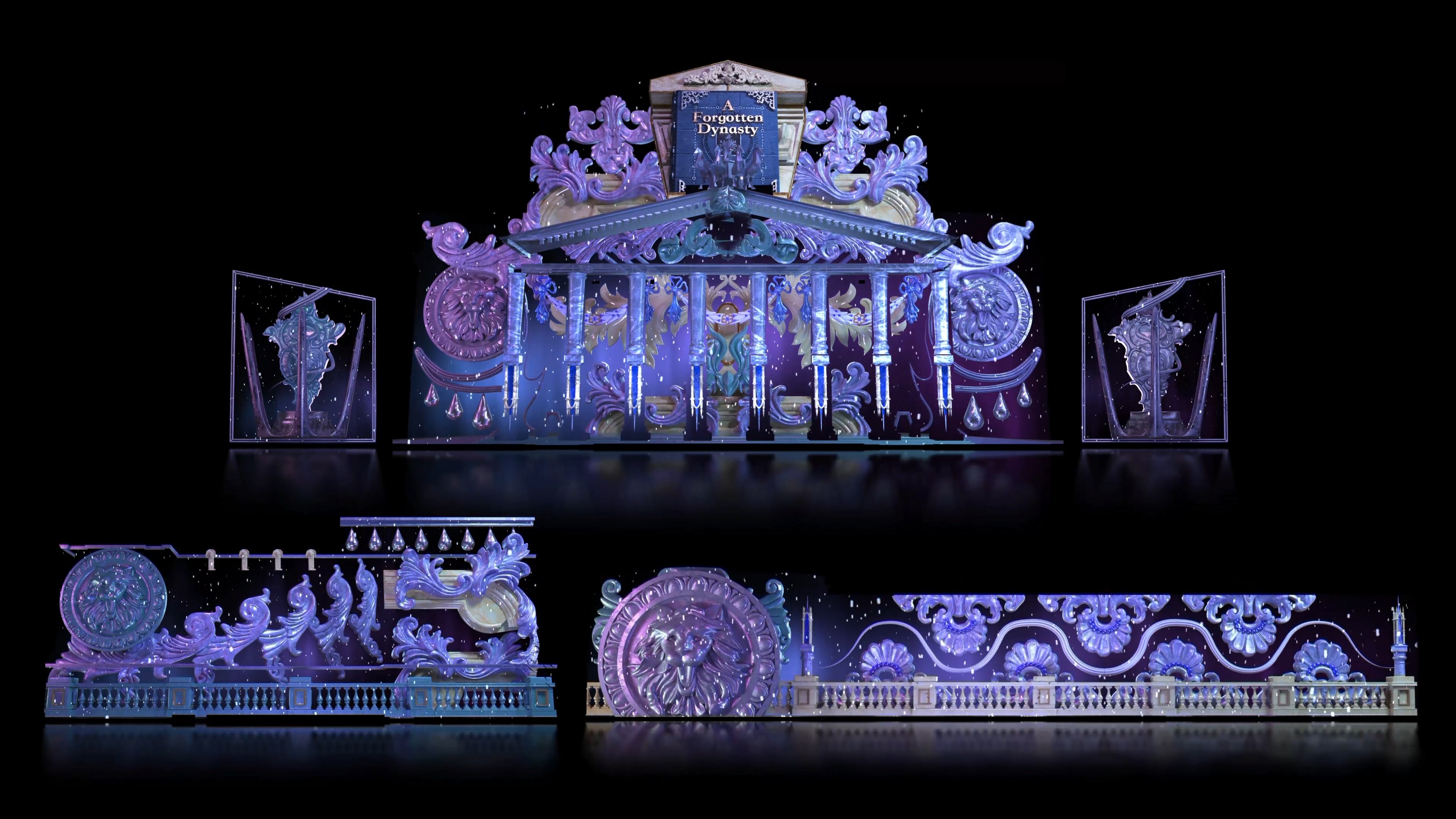 The Forgotten Dynasty is a mapping artwork centered on the theme of “the cycle of catastrophe driven by the struggle for fame and fortune.” Through the monumental stage of architectural projection, it seeks to reveal the fate of human civilization, rising and falling under the sway of greed and desire. The overall narrative unfolds like a historical allegory, delivering reflection and warning on human nature through overwhelming visual impact.In the design, the building is given multiple identities: it is both the hall of dynastic glory and the ruins left in the wake of war; both an illusory fairyland and a desolate wasteland. Constantly shifting scenes construct a grand narrative structure, moving from prosperity to destruction, and from destruction to the birth of new hope. Whether it is the blazing flames of battle, the cold solemnity of stone statues, or the mystical brilliance of exotic fantasy, each visual contrast deepens the layers of the story.Visually, the piece emphasizes the resonance between the textures of the building and the projected imagery. Classical colonnades and monumental façades are transformed into a canvas of history, while projection becomes the chisel of time, carving frame by frame the splendor and downfall of civilizations. Through the use of symbols such as fire, ice, chains, swords, and spears, the work strives to create an epic atmosphere beyond reality, immersing the audience in awe while reflecting on the fragility and recurrence behind civilization.Ultimately, The Forgotten Dynasty is more than a visual spectacle; it is also a dialogue of thought. It raises an enduring proposition through art: in the river of time, desire and power may bring fleeting glory, but only reflection and vigilance can serve as the true foundation for the continuity of human civilization. It was for this reason that the piece received the Silver Prize in the Classical Category at the Moscow Light Festival 2019.