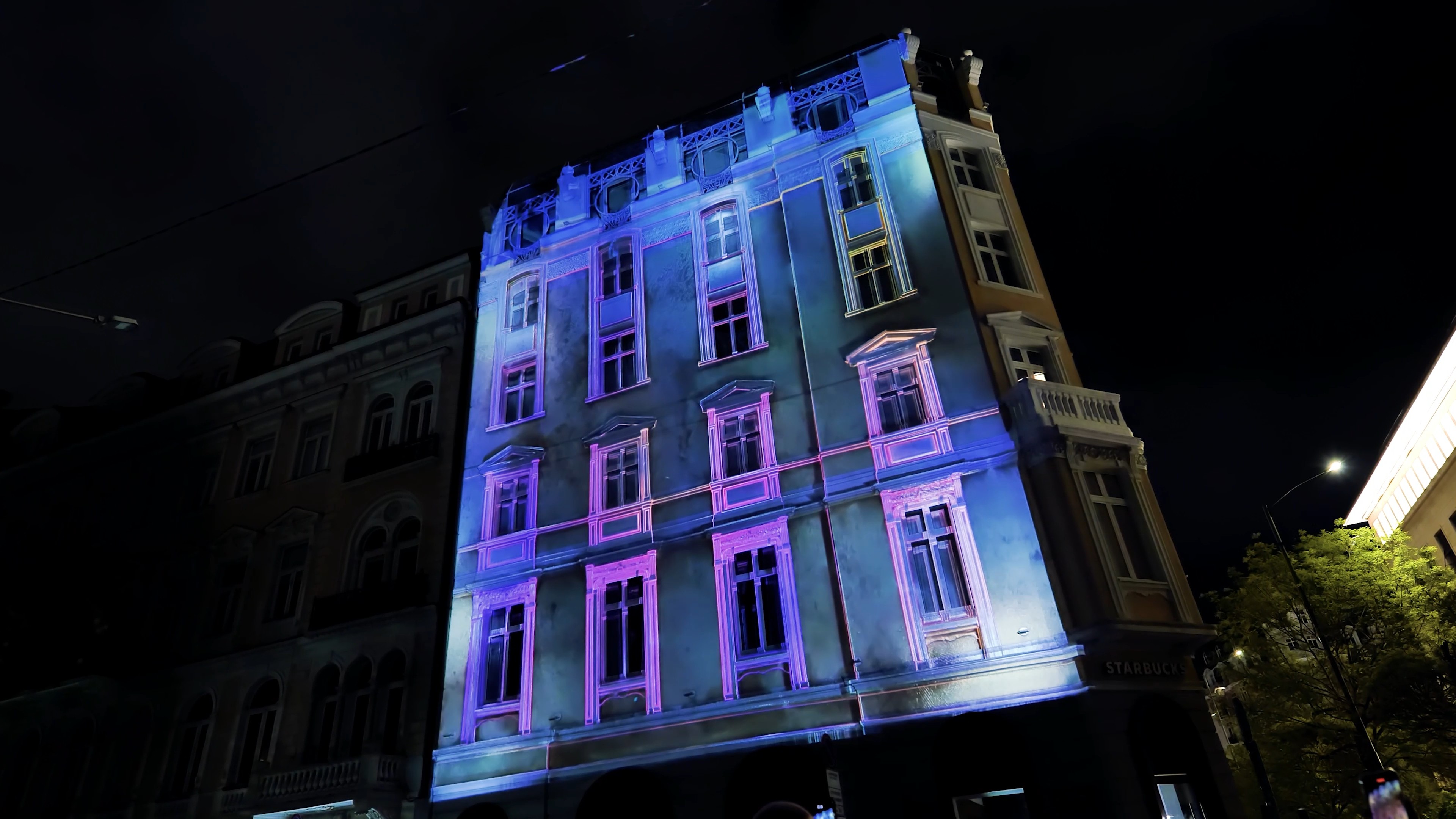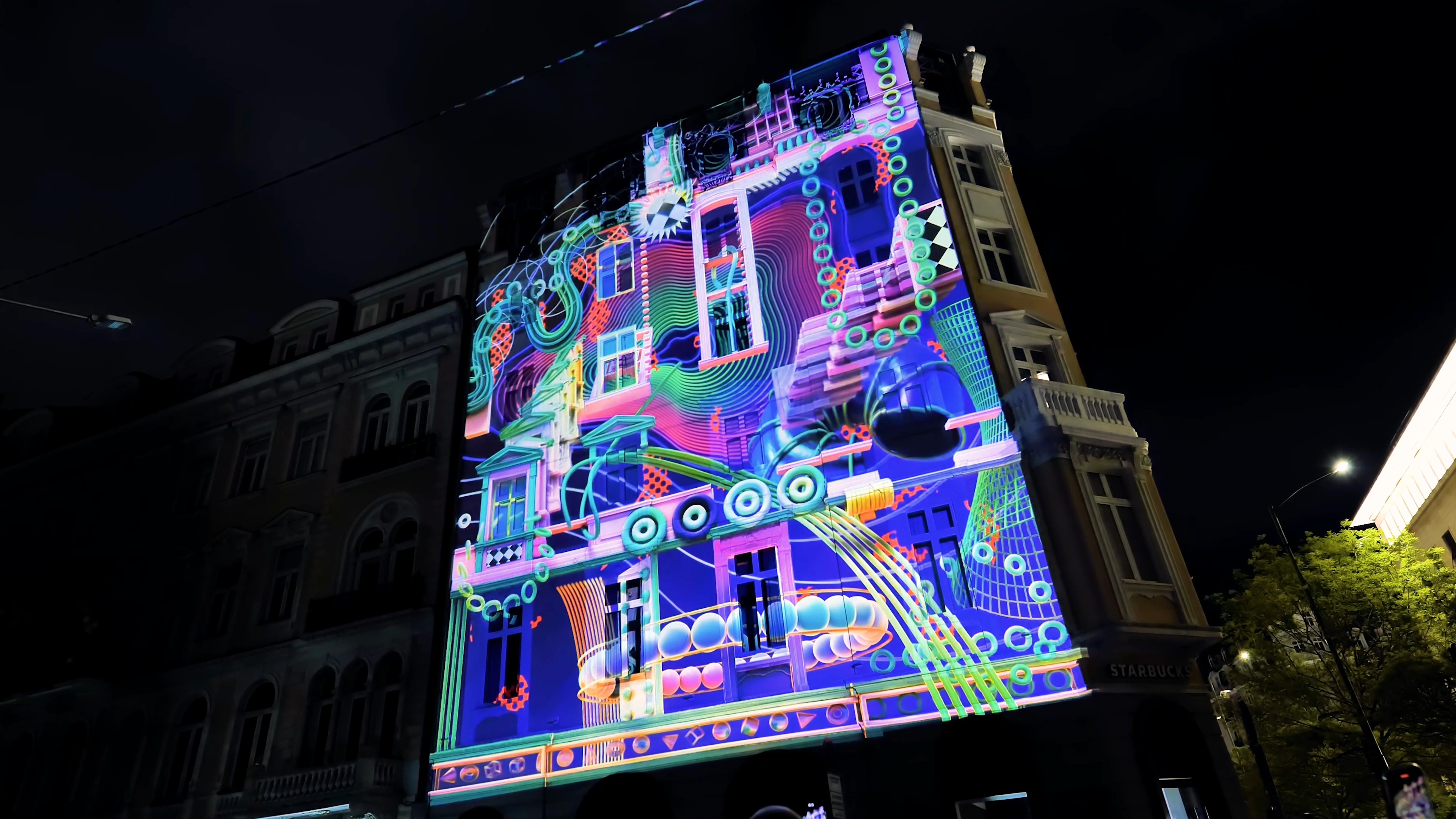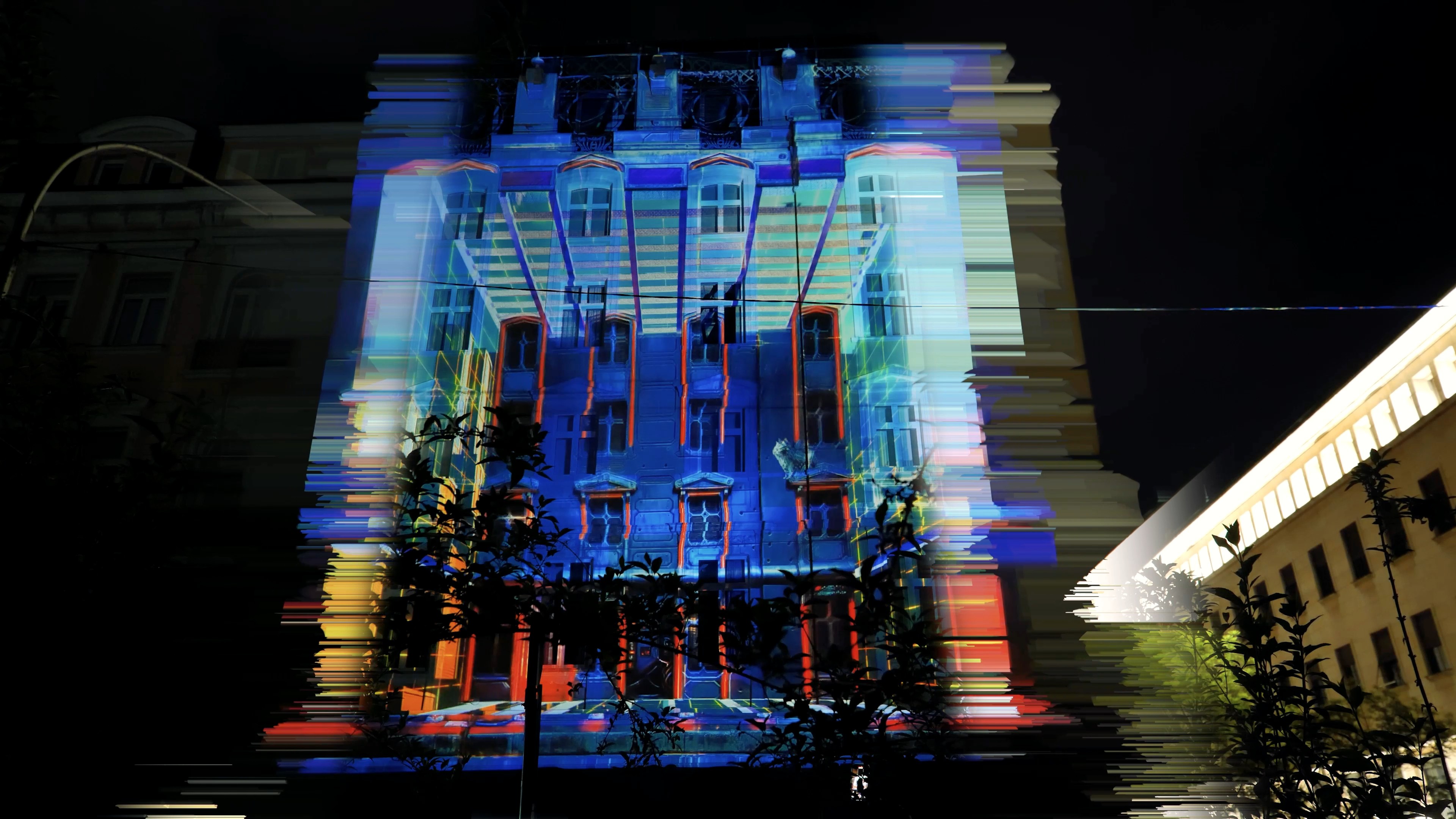 At the 2025 Lunar Light Festival in Sofia, Bulgaria, a special work titled Beyond was presented. This architectural mapping piece was specially created to celebrate the 25th anniversary of BTV Media Group in Bulgaria. The project brought together top visual art teams from five countries – China, Indonesia, Germany, Spain, and Bulgaria – with four thematic chapters: inspiration, evolution, unity, and entertainment. Through mapping imagery, the piece created an audiovisual journey across time and space.Each creator contributed a unique artistic segment rooted in their own culture and aesthetics, resulting in a dynamic interplay of styles projected on a single architectural facade. Our team was responsible for the “Inspiration” chapter, using geometry and color to build an imaginative visual rhythm. Together with other exceptional international creators, we completed a work filled with futuristic vision and artistic tension.