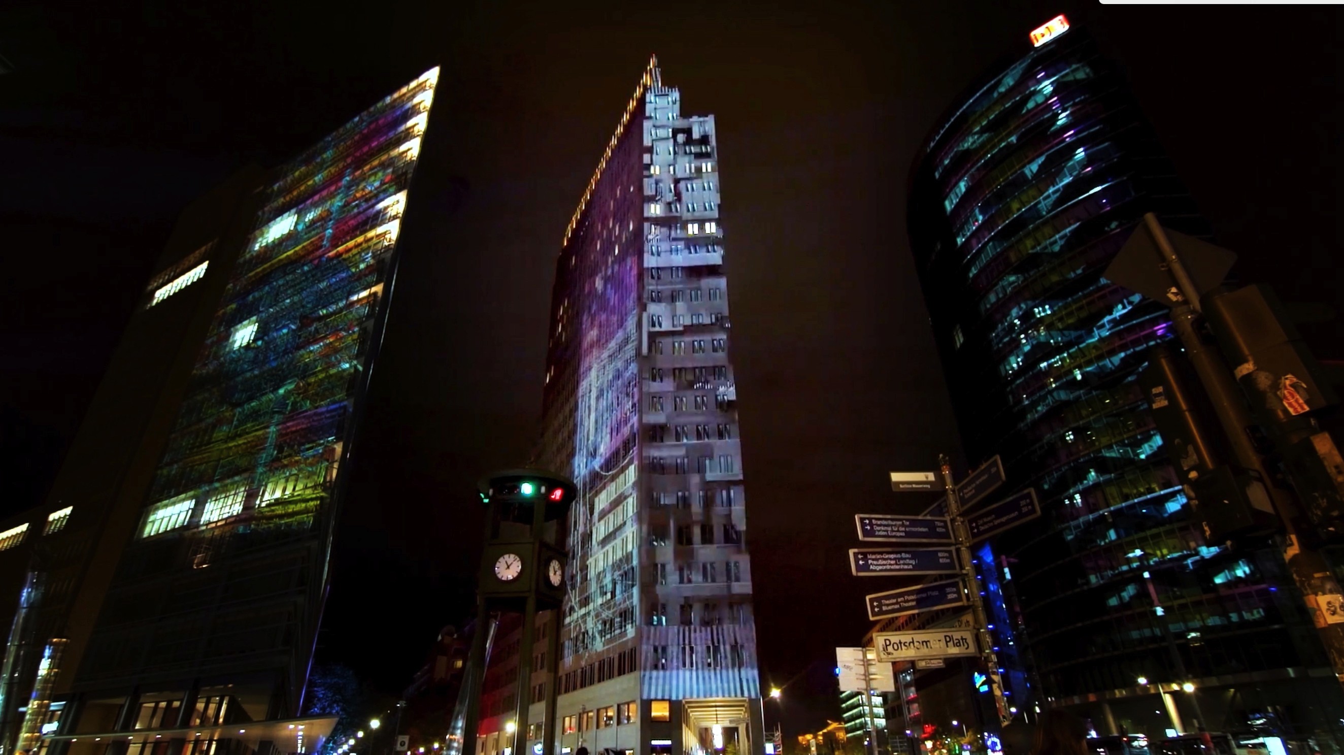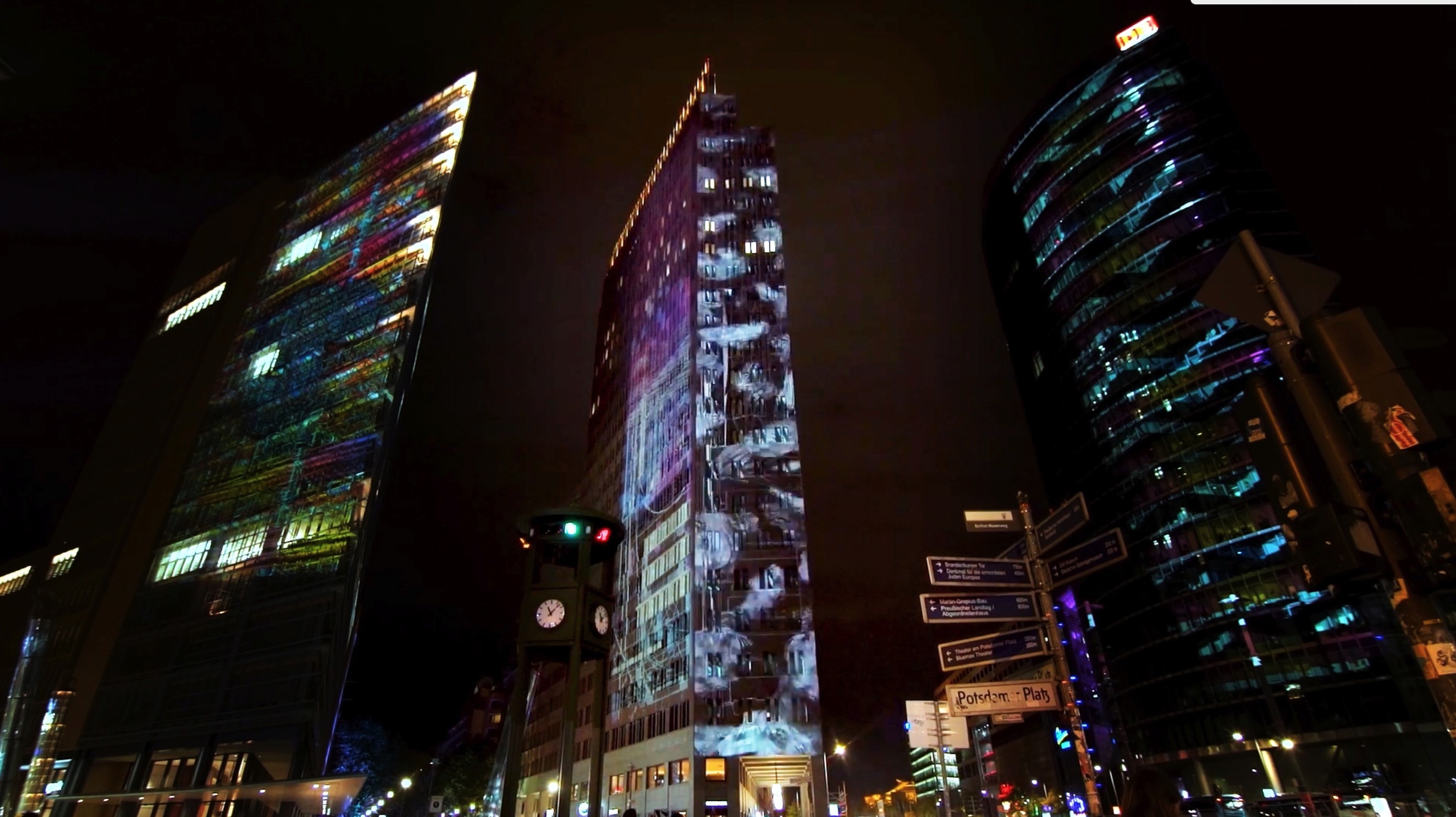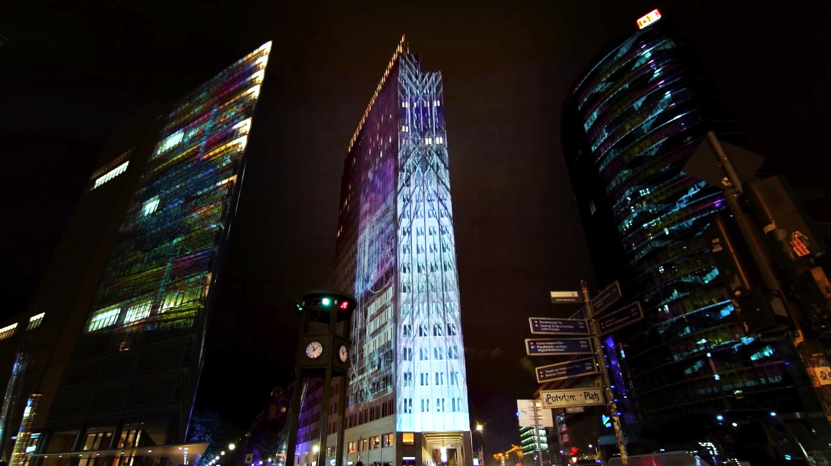 In 2018 in Berlin Germany during a mapping event we created the piece New Boundary using the Kollhoff Tower as its canvas to explore the deep integration between technology and human life. The work opens with the bustling rhythm of the city and flowing light revealing the tempo of the times. The Kollhoff Tower stands like a towering lighthouse symbolizing humanitys search for direction and the future amidst rapid transformation.As the mapping unfolds dynamic lines and colors gradually outline a future shaped by intelligent technology sustainable development and environmental protection. The buildings facade is reimagined as an interface for the flow of information breathing with the energy exchange between humans and technology. The interplay of light and shadow expresses not only the power of technology but also humanitys creativity and courage in the face of the unknown.New Boundary poetically reminds viewers that the future is not distant but is being shaped by us in this very moment. The flowing light reflects both thought and hope inspiring people to step boldly toward a tomorrow full of possibilities in a changing world.