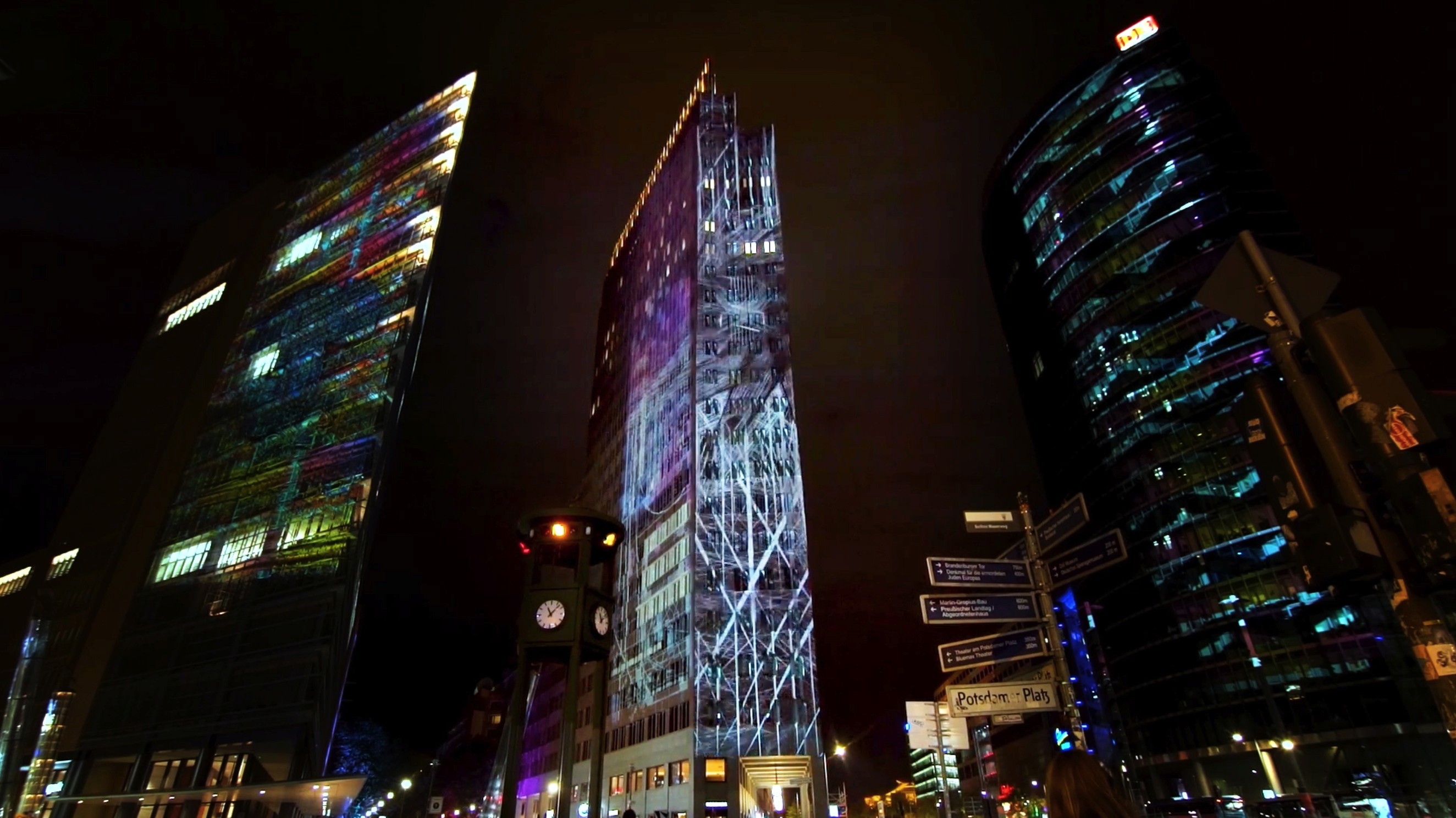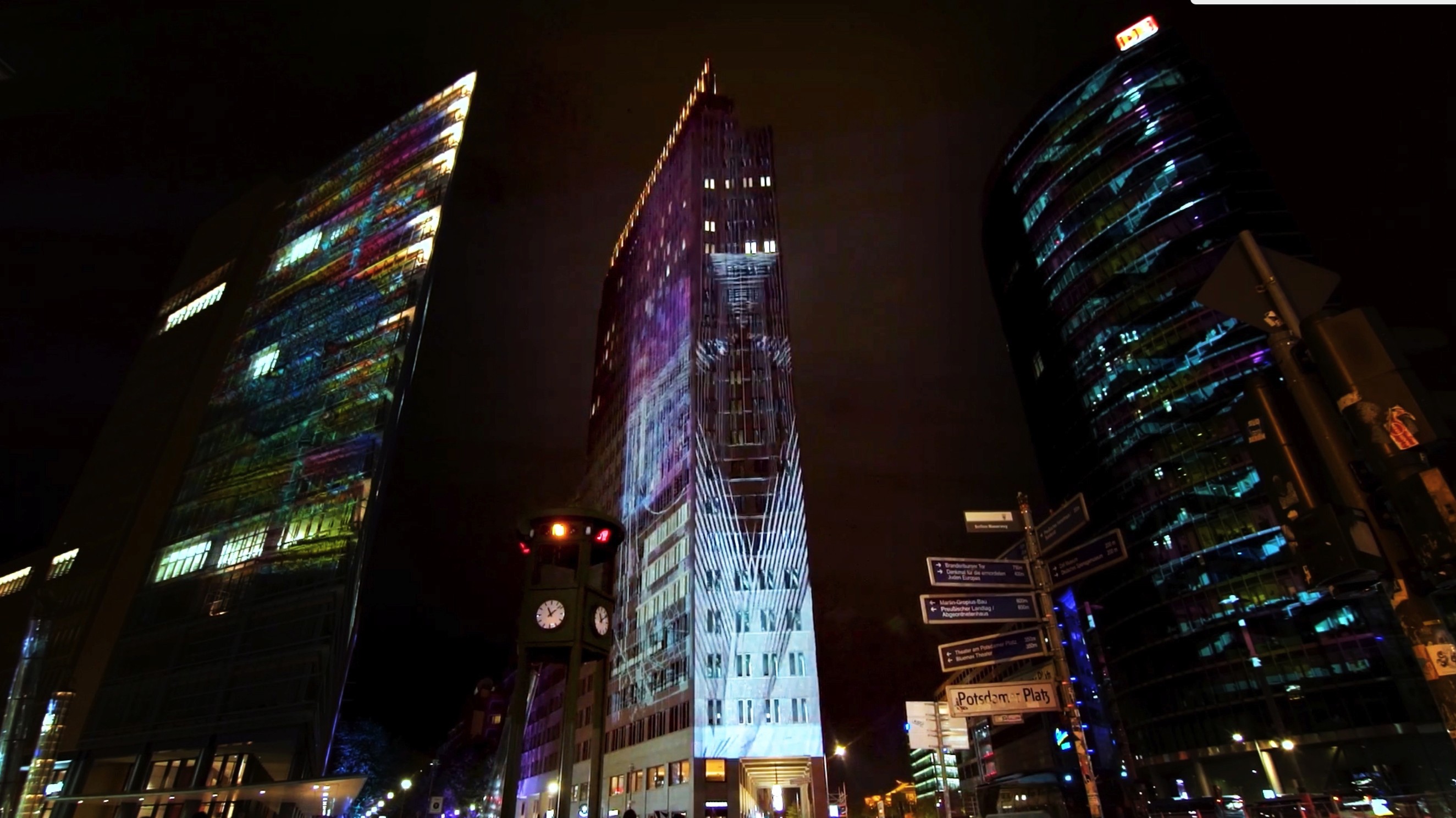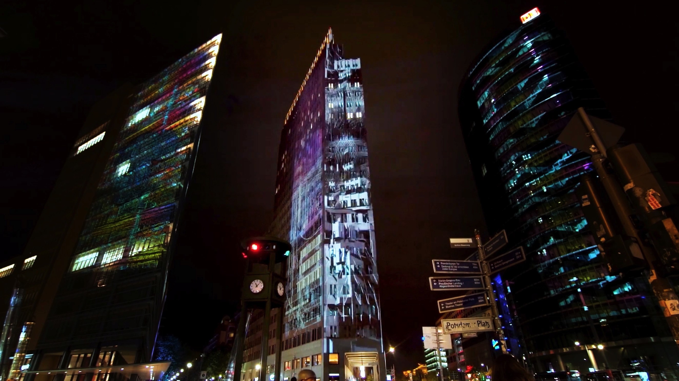 In 2018 in Berlin Germany during a mapping event we created the piece New Boundary using the Kollhoff Tower as its canvas to explore the deep integration between technology and human life. The work opens with the bustling rhythm of the city and flowing light revealing the tempo of the times. The Kollhoff Tower stands like a towering lighthouse symbolizing humanitys search for direction and the future amidst rapid transformation.As the mapping unfolds dynamic lines and colors gradually outline a future shaped by intelligent technology sustainable development and environmental protection. The buildings facade is reimagined as an interface for the flow of information breathing with the energy exchange between humans and technology. The interplay of light and shadow expresses not only the power of technology but also humanitys creativity and courage in the face of the unknown.New Boundary poetically reminds viewers that the future is not distant but is being shaped by us in this very moment. The flowing light reflects both thought and hope inspiring people to step boldly toward a tomorrow full of possibilities in a changing world.