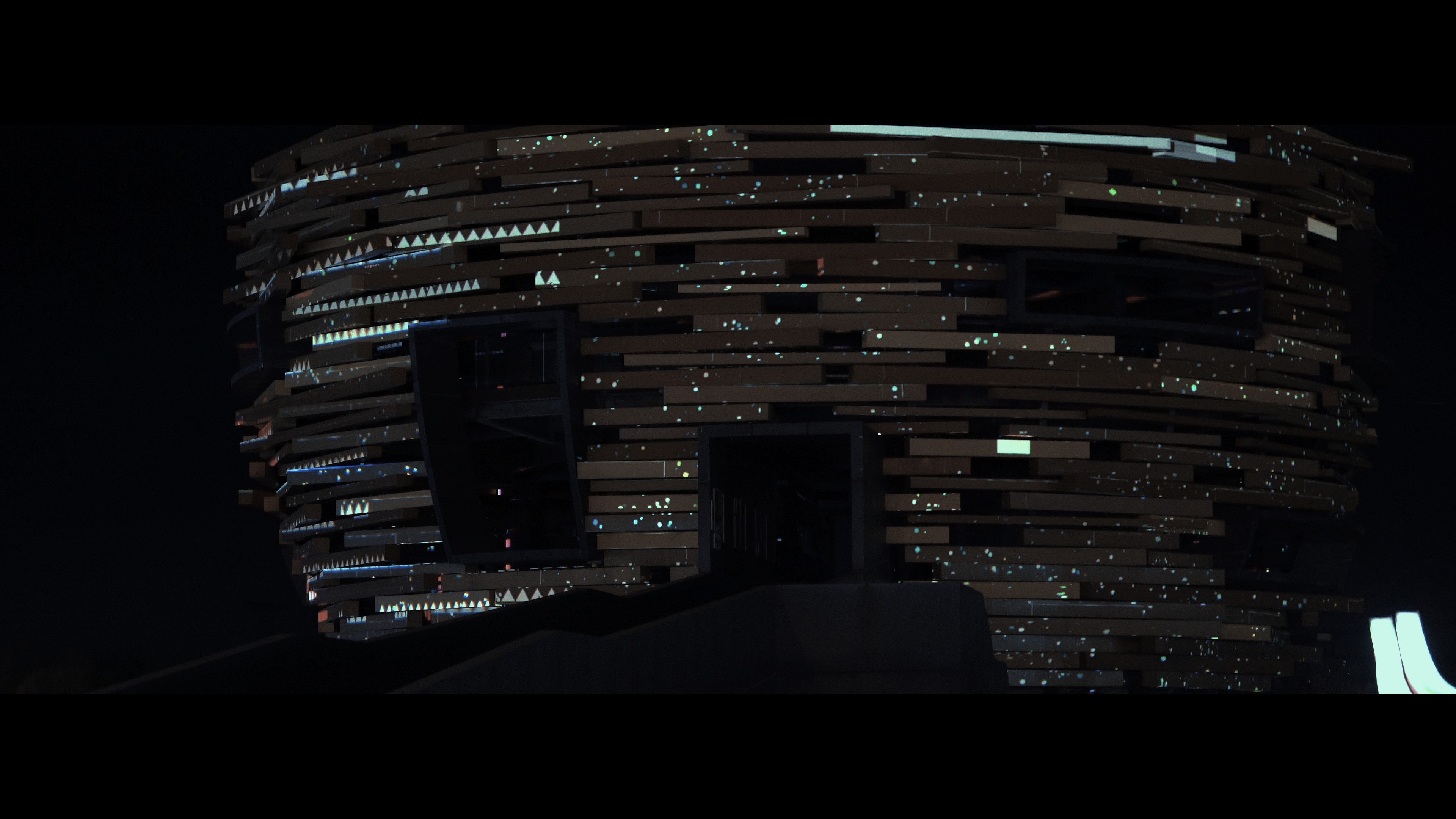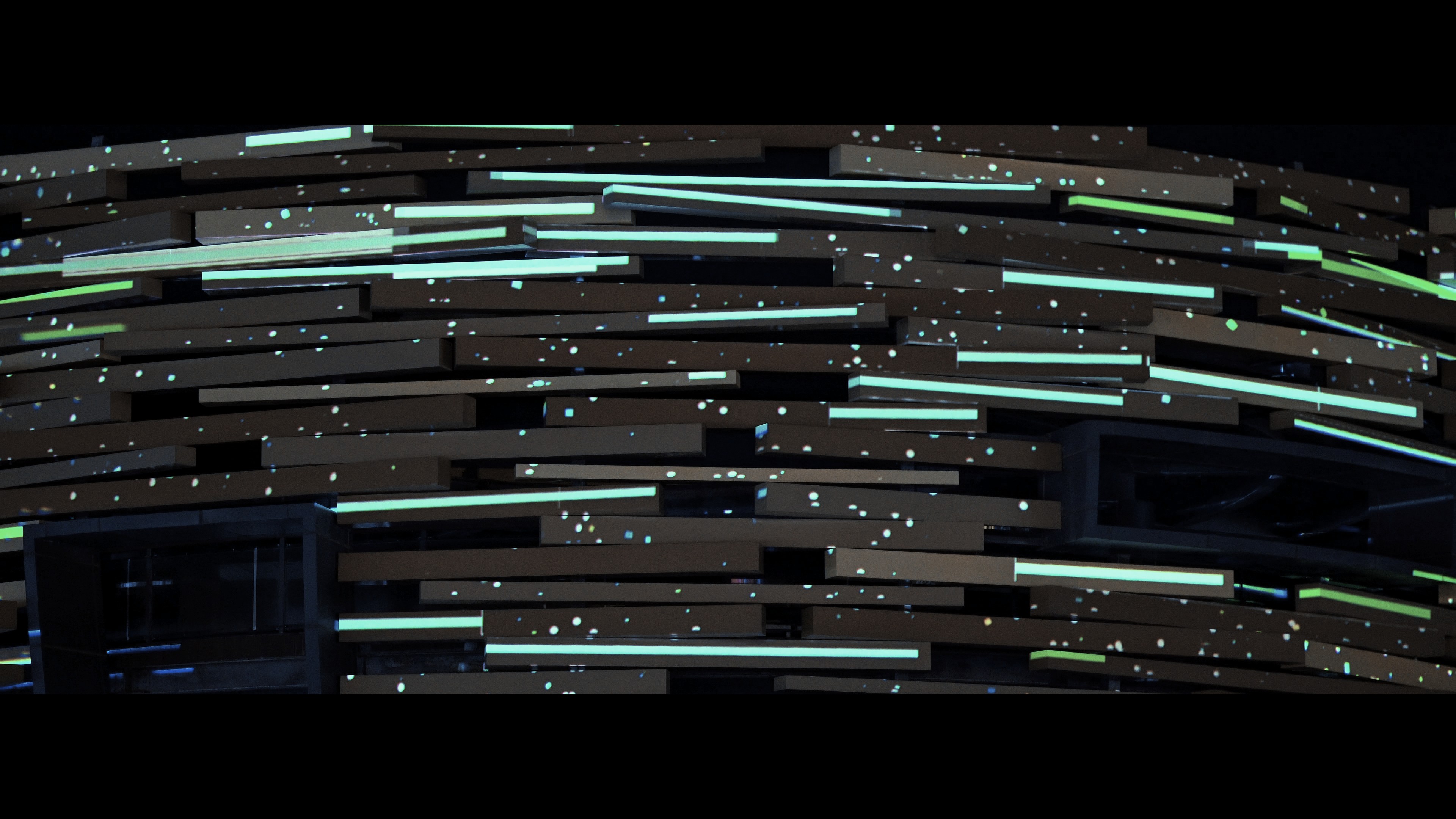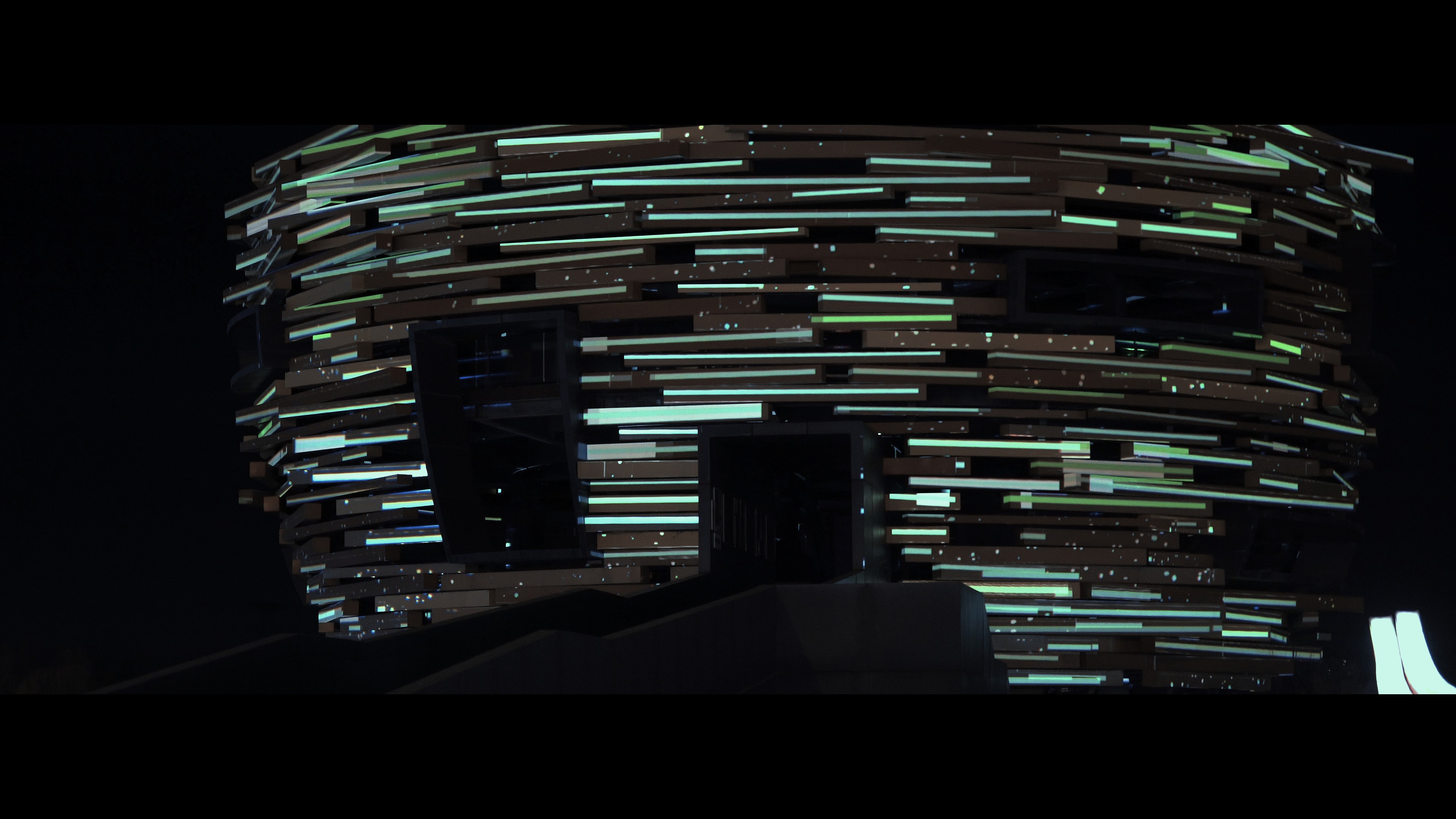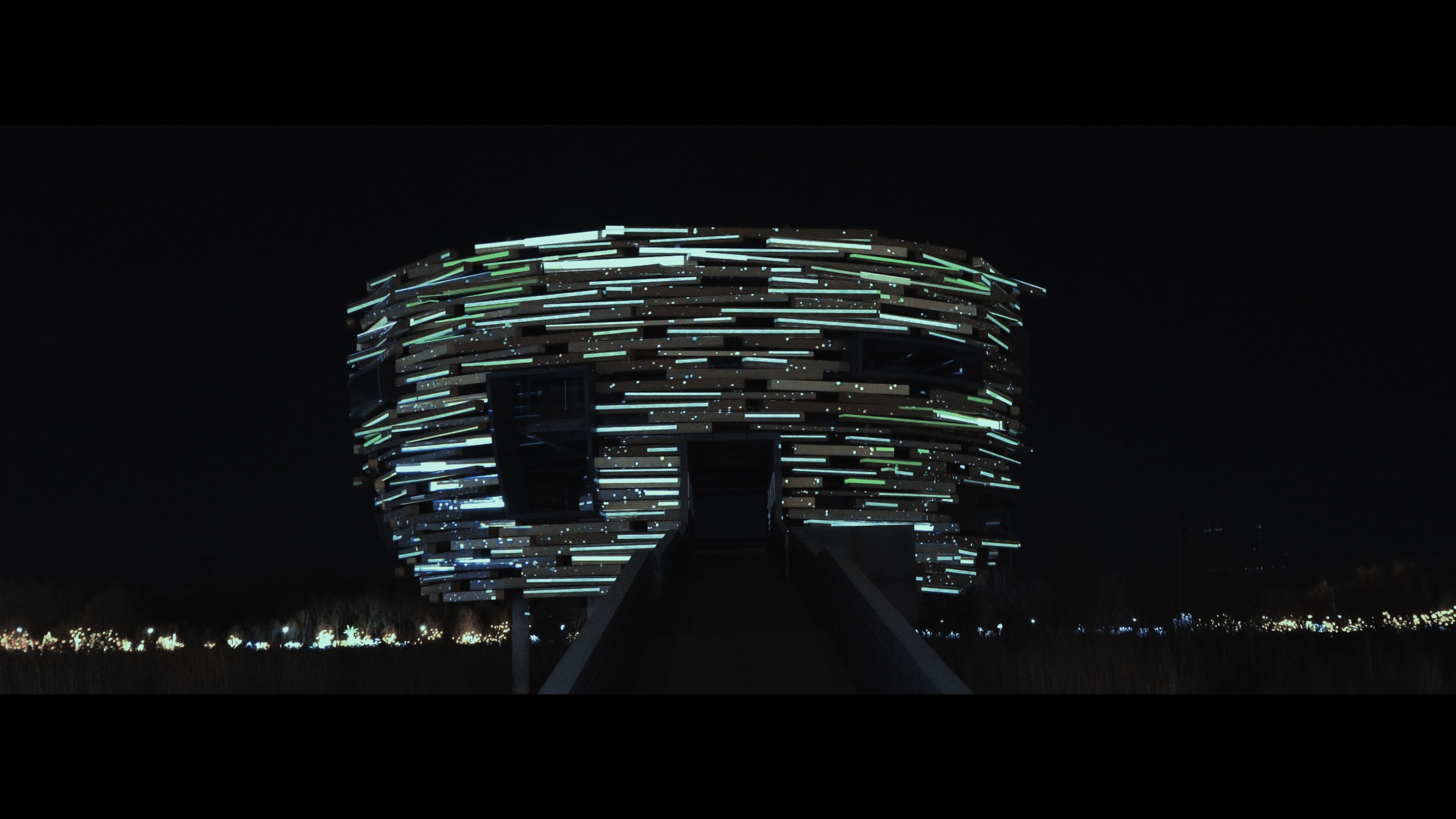 "Hymnal Echoes" is an art work themed around the universe and civilization, inspired by the Three-Body Problem novel`s mention of the Singer civilization and the concept of echoes. Through the fusion of projection and sound, the work creates an immersive experience that transcends time and space. The Singer symbolizes distant interstellar civilizations, transmitting information in unique ways, forming waves of sound across the cosmos. The Echo represents the moment when these signals are captured and responded to by other beings in the depths of space—like the reverberations and reflections of the universe itself. Presented on the Niaowu architecture in Beijing`s Wenyuhe Park, the piece uses light and sound to simulate the communication of civilizations through echoes, expressing humanity`s endless curiosity and exploration of the vast cosmos. The projections display symbols and imagery of the Singer civilization, seamlessly integrating with the surrounding natural environment. This interplay invites the audience to experience the immensity and mystery of the universe, evoking a profound reflection on humanity`s own insignificance and grandeur within it.