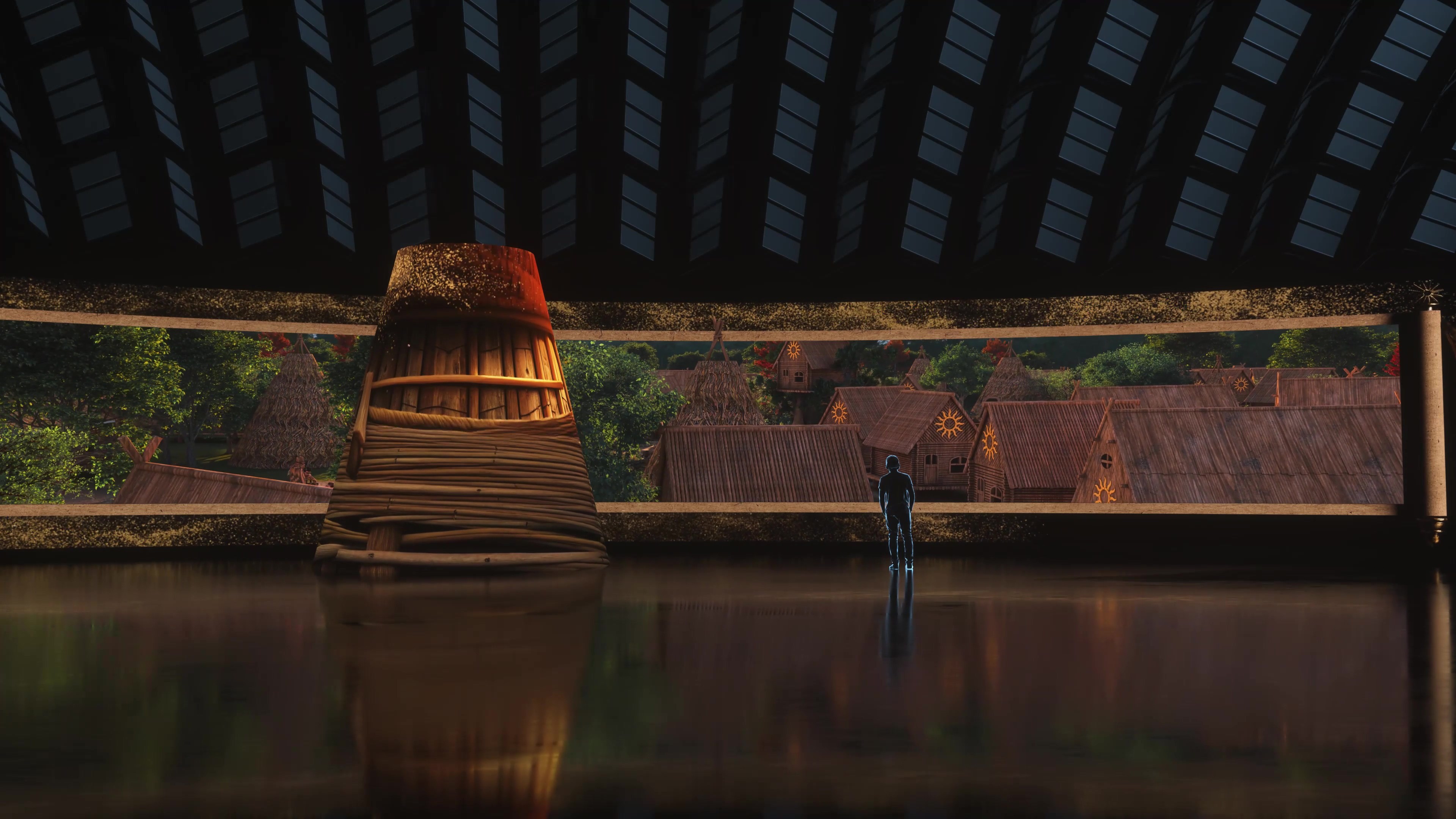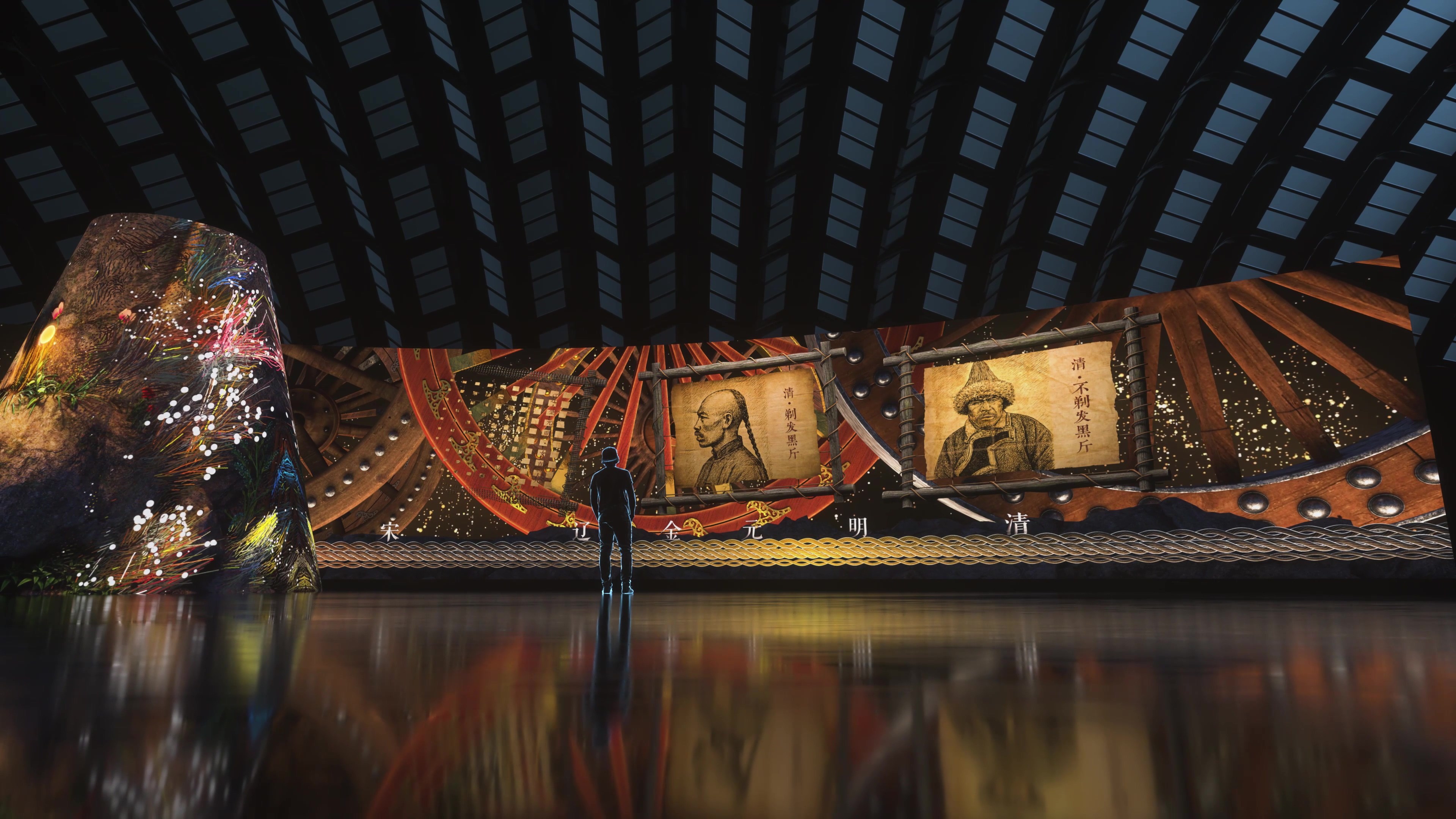 在黑龙江同江市的赫哲数字非遗体验馆,人们得以走近这支古老民族的精神家园。博物馆的主题是守护与传承赫哲族的文化根脉,用数字化的方式让历史重新发声。从远古七大氏族的源头,到岁月流转的族群变迁,赫哲的故事在这里延绵不绝。我们为馆内创作了一部三分钟的沉浸影片,以赫哲族的诞生与起源为主线,追溯天地初开的传说与先民的足迹。画面交织着自然的呼吸与族群的心跳,让观众在光影之间,仿佛与祖先并肩而行,感受到赫哲民族坚韧与纯粹的生命力量。影片不仅讲述历史,更唤起心灵深处的共鸣,让文化的记忆在数字世界里再次鲜活。