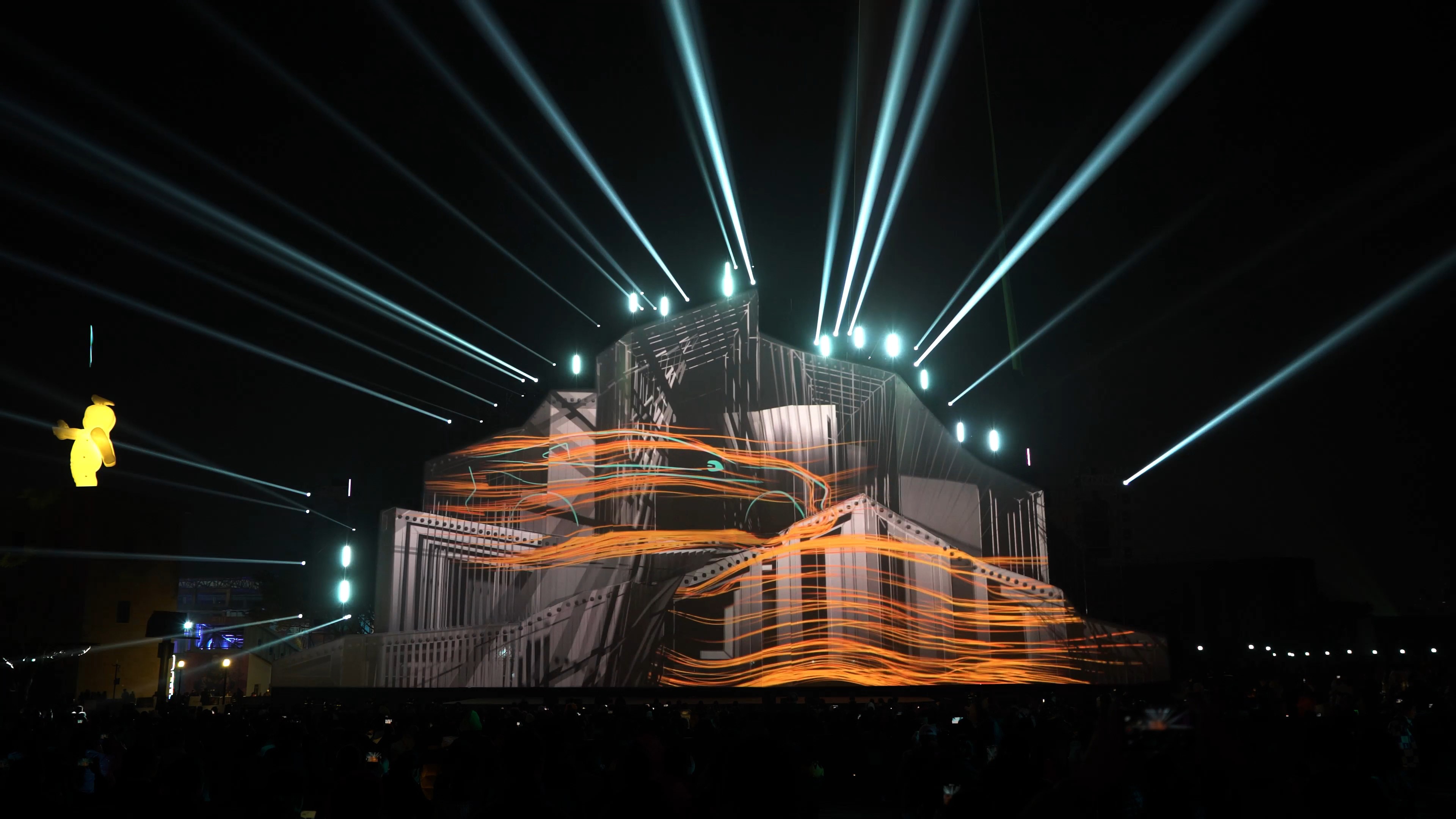 深蓝汽车MAPPING光影秀将在重庆国际光影艺术节的载体上呈现高级简洁的概念片,从现实向虚拟转变,展示深蓝汽车作为科技先锋的角色。通过流动线条和蓝色光谱,建筑外表仿佛融入未来科技,与年轻人联结,展现人类与先进科技的融合,勾勒出飞行汽车穿梭于未来城市景观中的场景,呈现科技与文明的未来探索。
