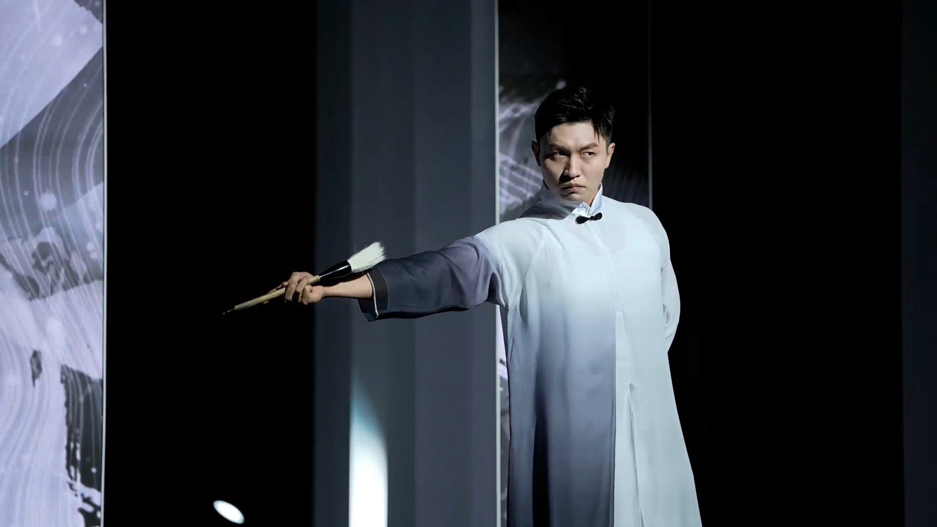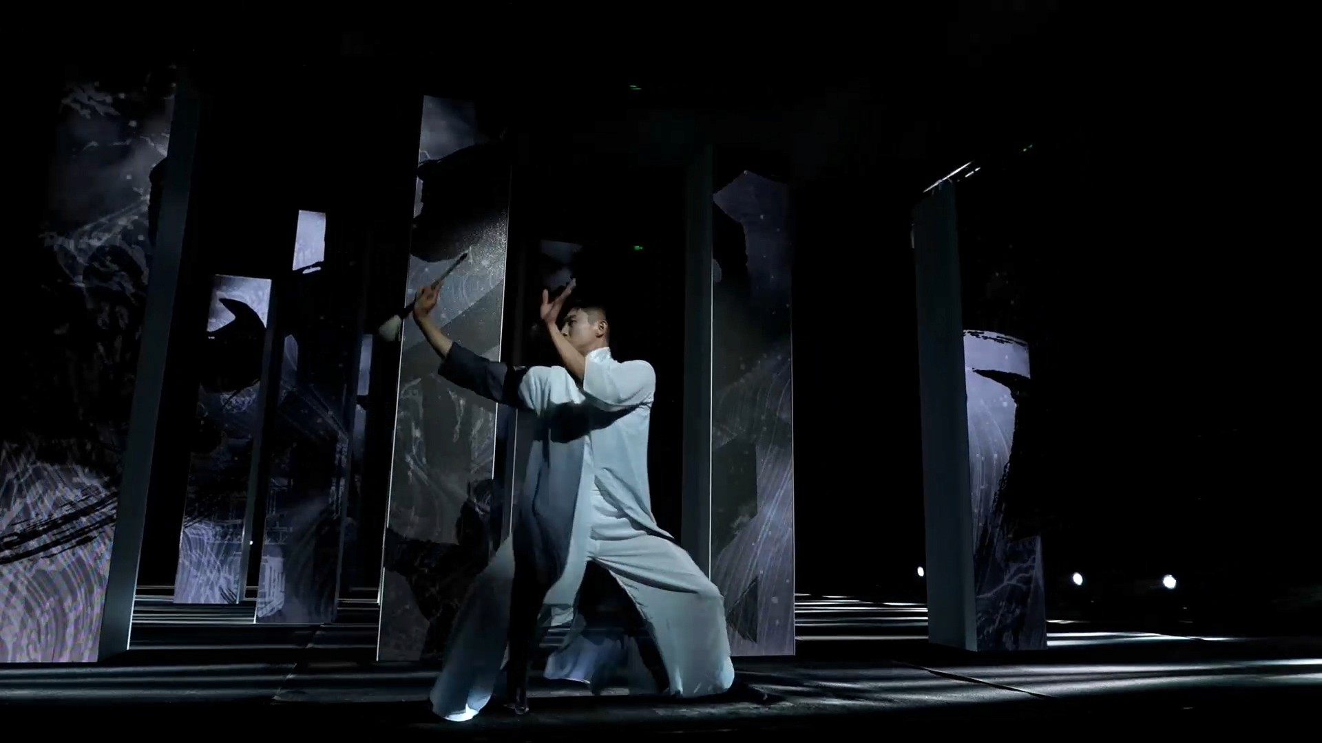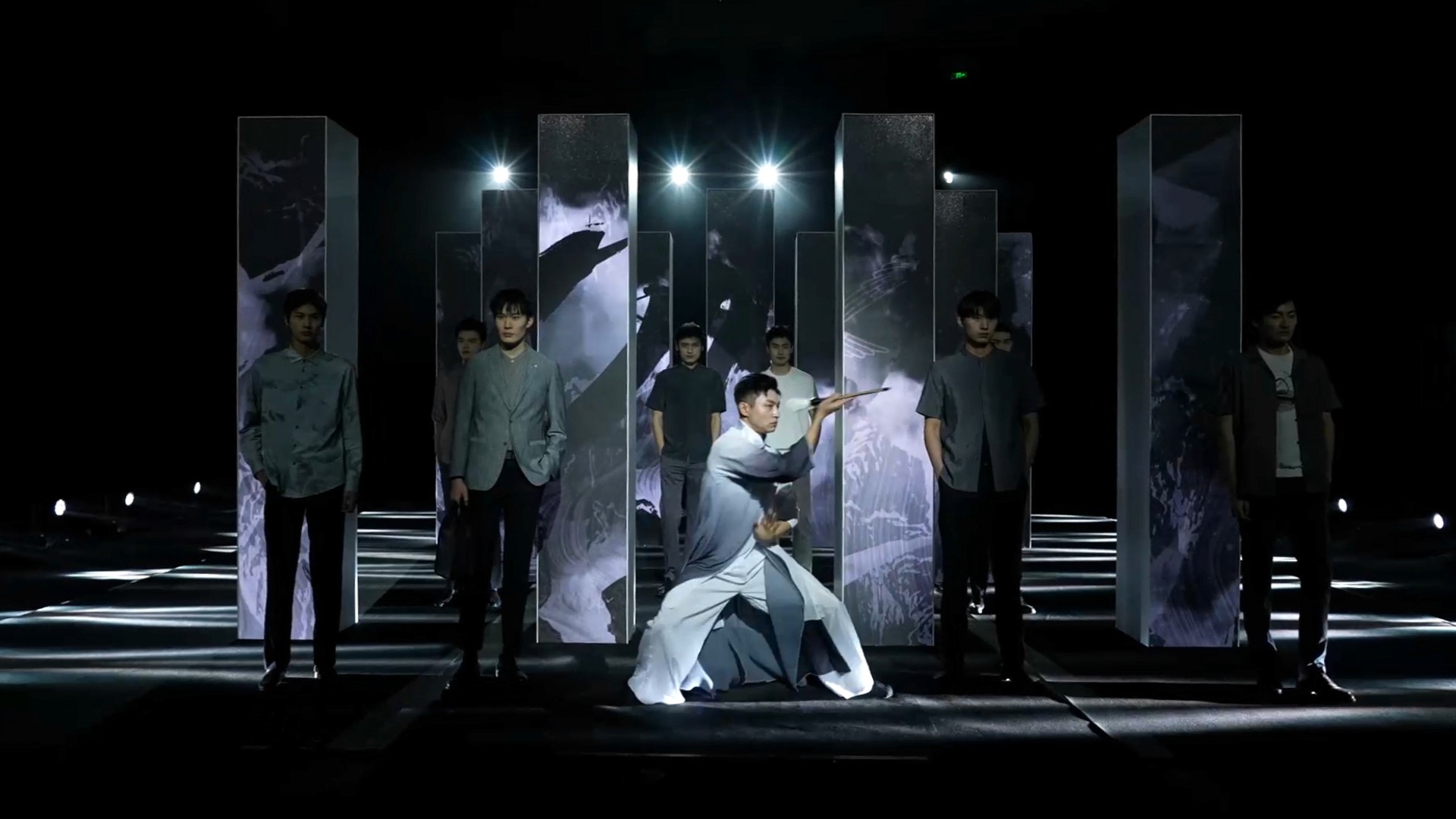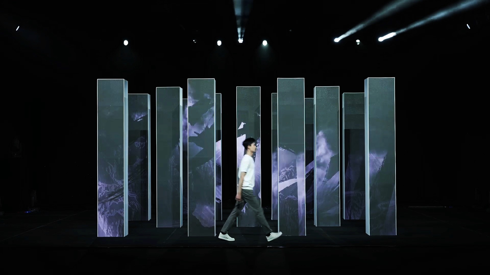在威可多VICUTU的新品发布会上,我们在由20多根立柱组成的走秀舞台上,创作了中式水墨山水意境的数字艺术。将丹顶鹤三个字的笔划融入到背景的水墨山水中,黑、白、灰三色勾勒出空灵幽美的国风意境。红色代表丹顶鹤,黑白象征山水,山海间的流淌呈现抽象之美。国画“泼墨”手法与数字手段相结合,表现出烟云中鹤飞带起粒子的拖尾,寓意着高古之美。最后,黄金时代的色彩华丽,立体水墨粒子如太阳般炫光四射,记录这个最美好的时代。这数字艺术作品展现了丰富多彩的中国山水文化,与VICUTU品牌的时尚气息相得益彰。