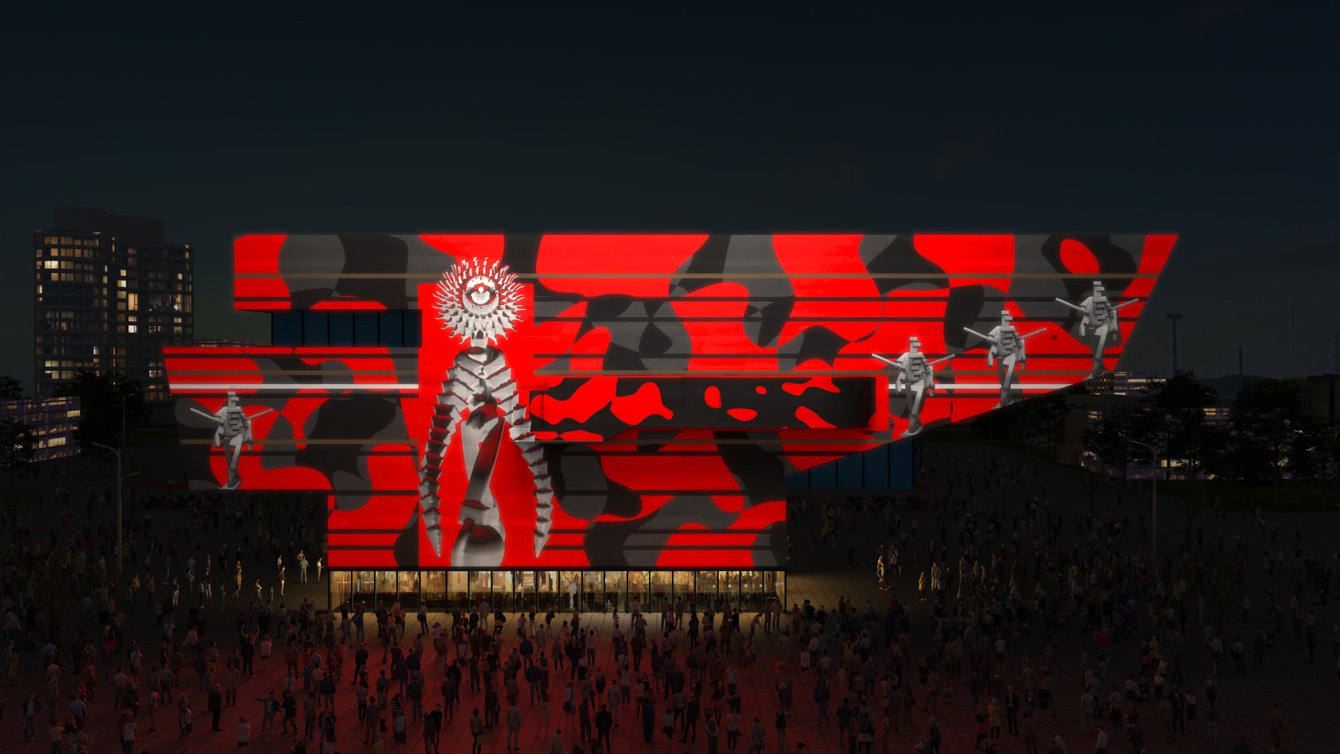 Elements系列作品的第五部,投稿于巴塞罗那OFFF美术馆外立面投影。这部作品带我们进入一个平行宇宙,在这里,居民由各类化学元素序列神秘聚合而成。他们在酸性空间中野蛮生长,散发出独特的电波频率,仿佛自然界的节奏与能量在此交织。在这个异次元空间中,每一个频率都蕴含着一个故事,一种生命的痕迹。我们用AI创作技术和MIXAMO动作库为基本,将音乐、色彩和3D文件巧妙地结合在了一起,组成了一种特殊的视听话语,由一系列探索不同概念的连续抽象场景组成。将来自这个平行宇宙的信息进行深度可视化,精准解析其频率,并将这些振动转化为鼓点与旋律,构建出一种独特的视听语言。这一切通过投影视频的形式,打破了时空的界限,将这种奇异的力量带入我们眼前。