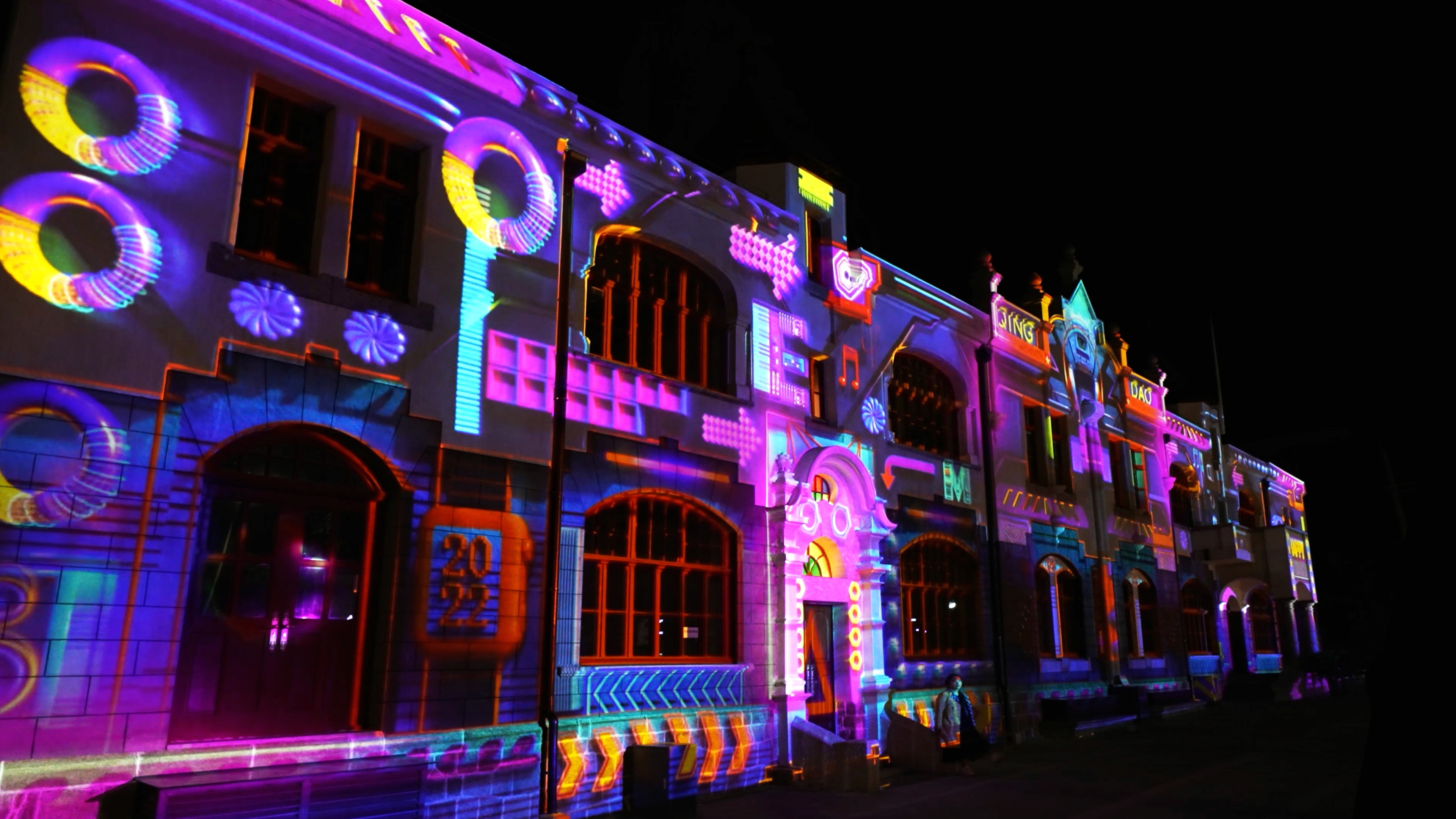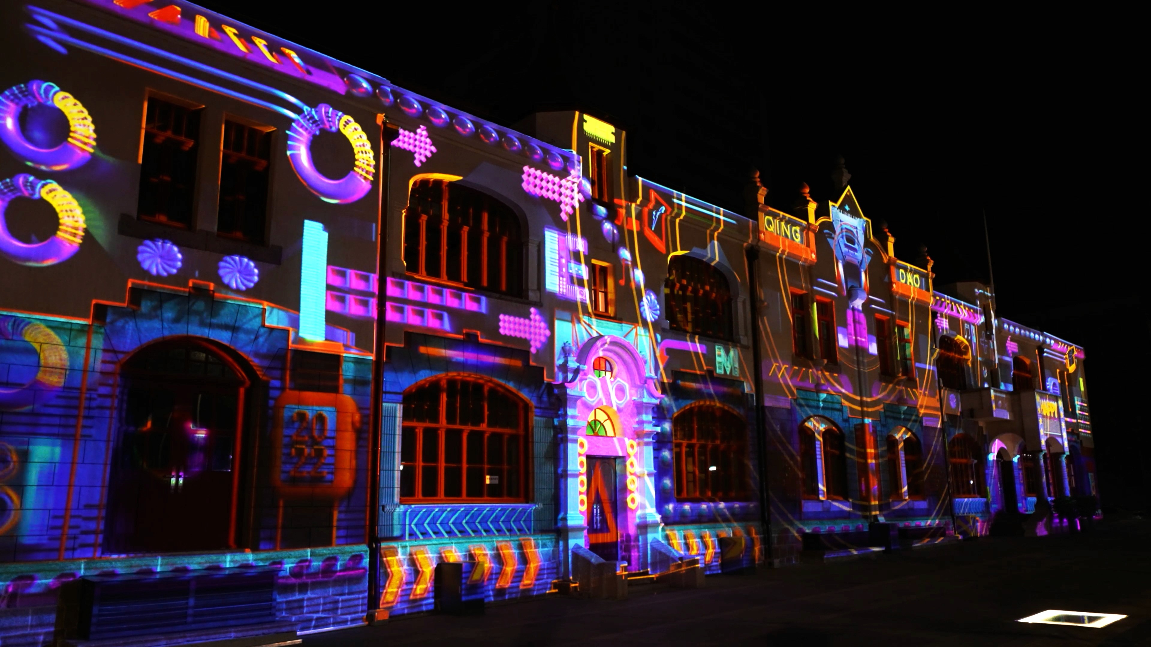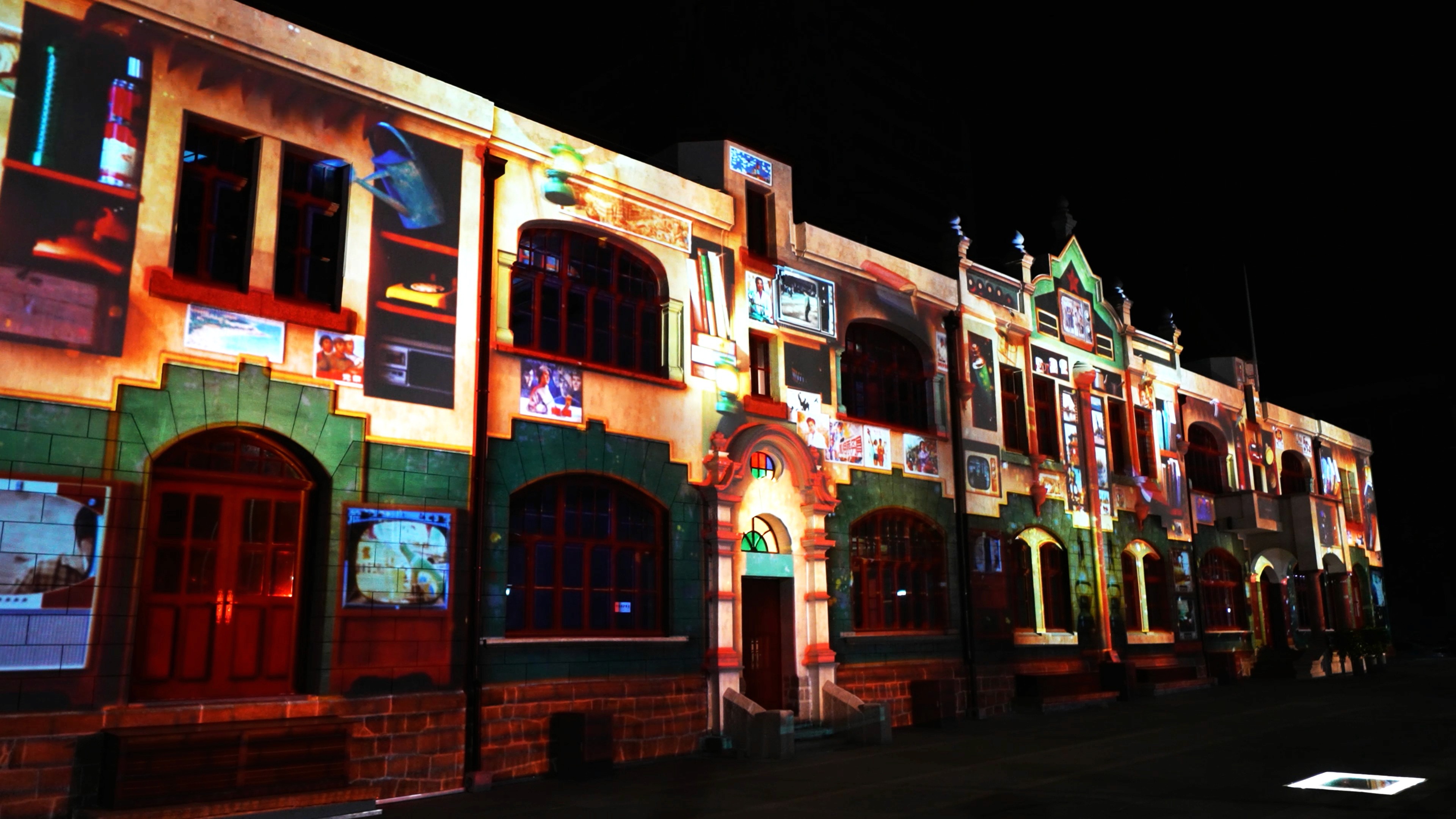 《青岛·城市记忆》以中山路为舞台,以数字光影的方式重现历史城区的独特魅力。整部作品分为三幕:第一幕:唤醒·空间,以光影流转点亮百年建筑的肌理,老墙、拱门与窗棂在数字艺术中苏醒,仿佛唤起沉睡的城市记忆。第二幕:遇见·城市,通过复古影像与时代符号的交织,展现青岛在工业、商贸、生活中的变迁,霓虹闪烁、钢铁轰鸣与流光溢彩相互叠加,营造出与城市同频的记忆现场。第三幕:再现·繁盛,色彩与线条奔涌,重塑出今日青岛的现代风貌与活力,啤酒、音乐与节庆的元素交织,象征着城市面向未来的开放与热情。光与影的艺术叙事,让观众穿梭百年时光,既能感受到历史的厚重,又能感受到新时代的活力。《青岛·城市记忆》不仅是一次视觉盛宴,更是一次与城市灵魂的深度对话。