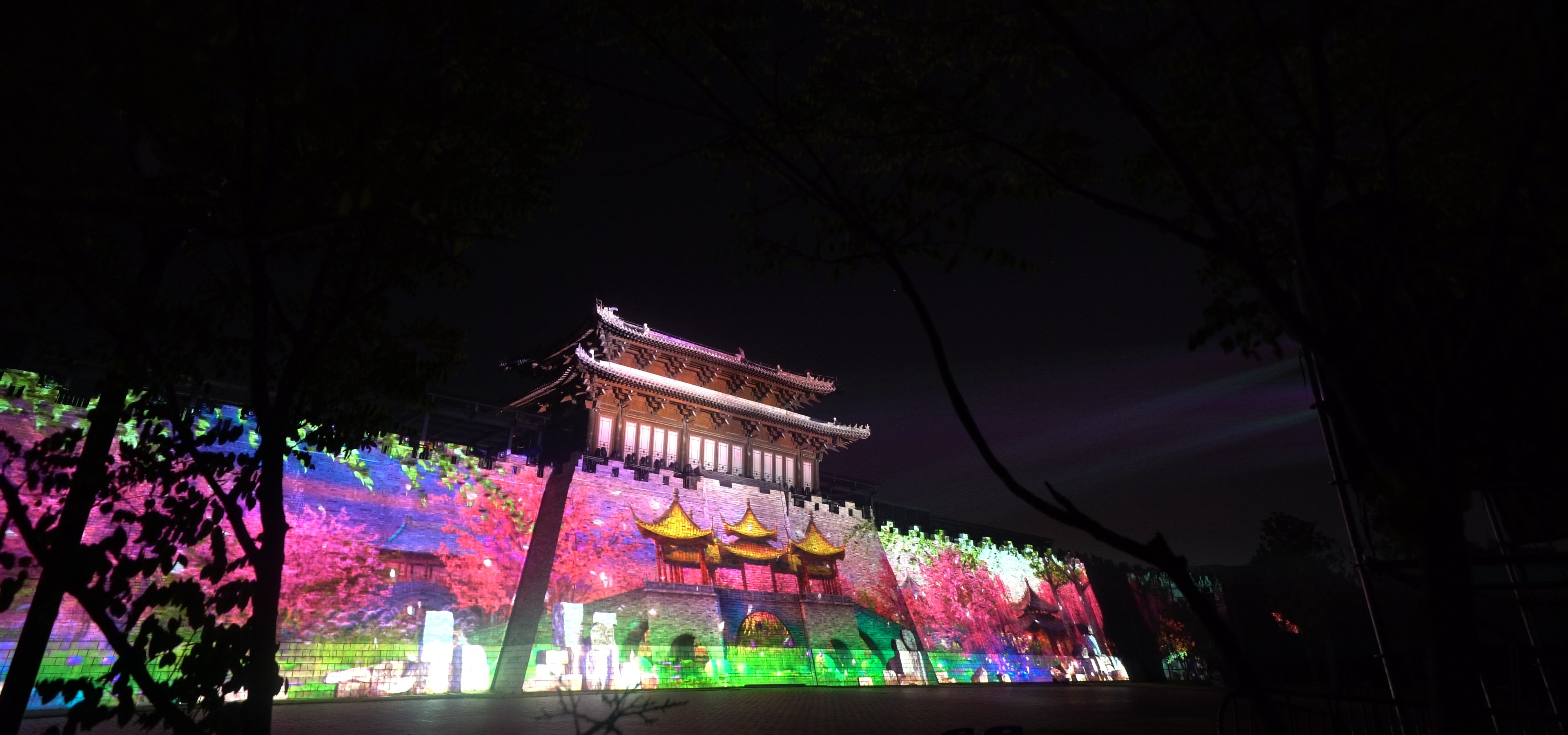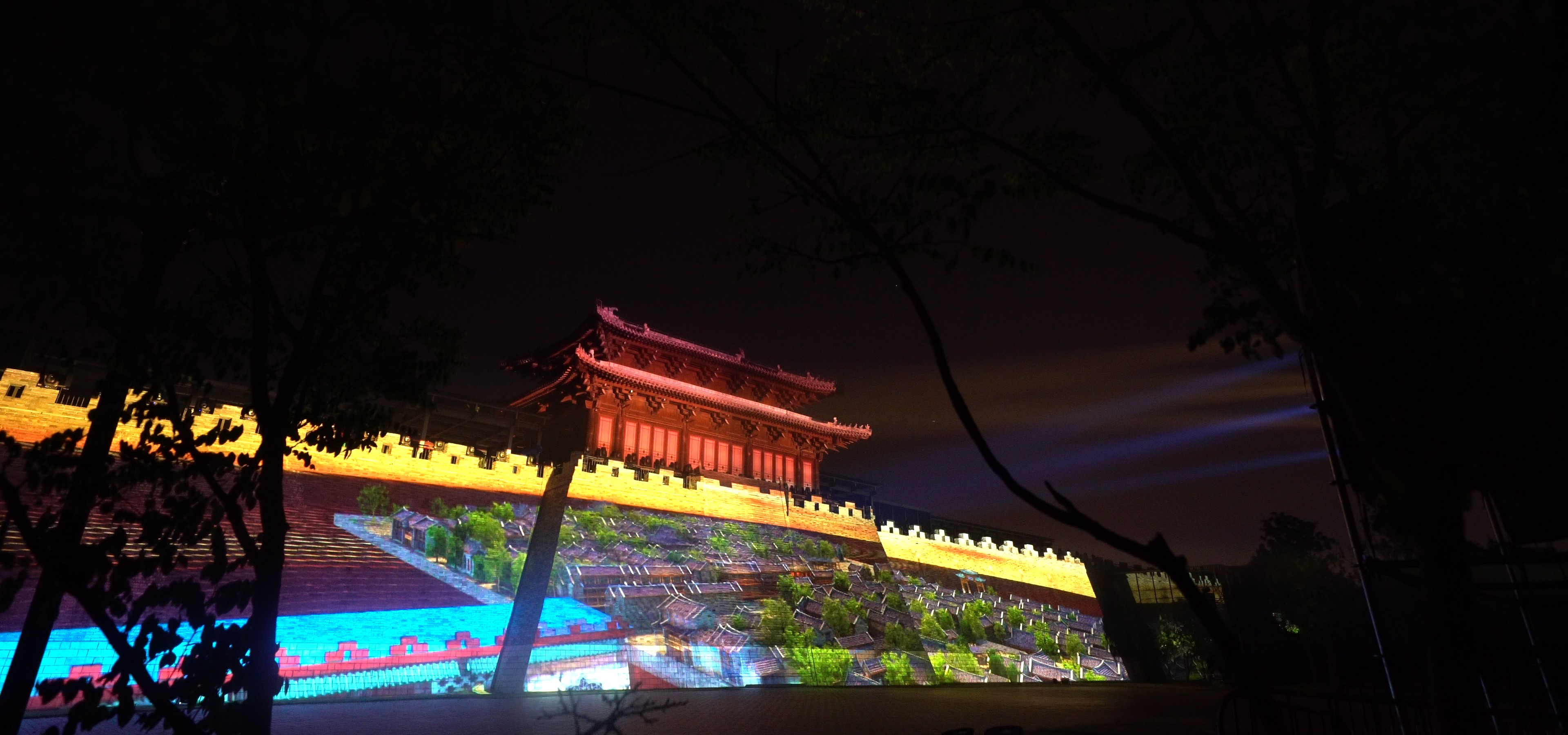 这场为扬州宋夹城量身打造的MAPPING光影秀,以古老城楼为巨幅画卷,借助投影技术与光影艺术,点亮首届“江苏邗建·2019运河文化嘉年华”的夜空。厚重的城墙在光影交织中焕发生机,千年运河文化与扬州的历史脉络徐徐铺展。画面中,邵伯船闻的繁忙、湾头古镇的古韵、瘦西湖的婉约、瓜洲古渡的苍茫,以及淮扬美食的独特风味,一一被赋予灵动之姿。运河的波光与城楼的肌理相互辉映,让观众沉浸于时空交错的旅程之中。这不仅是大运河申遗成功五周年的礼赞,更是一曲属于扬州的文化交响。我们希望,观众能在光影流转间,触摸到运河的壮阔与扬州的灵魂,感受千年文脉在当下的鲜活回响。
