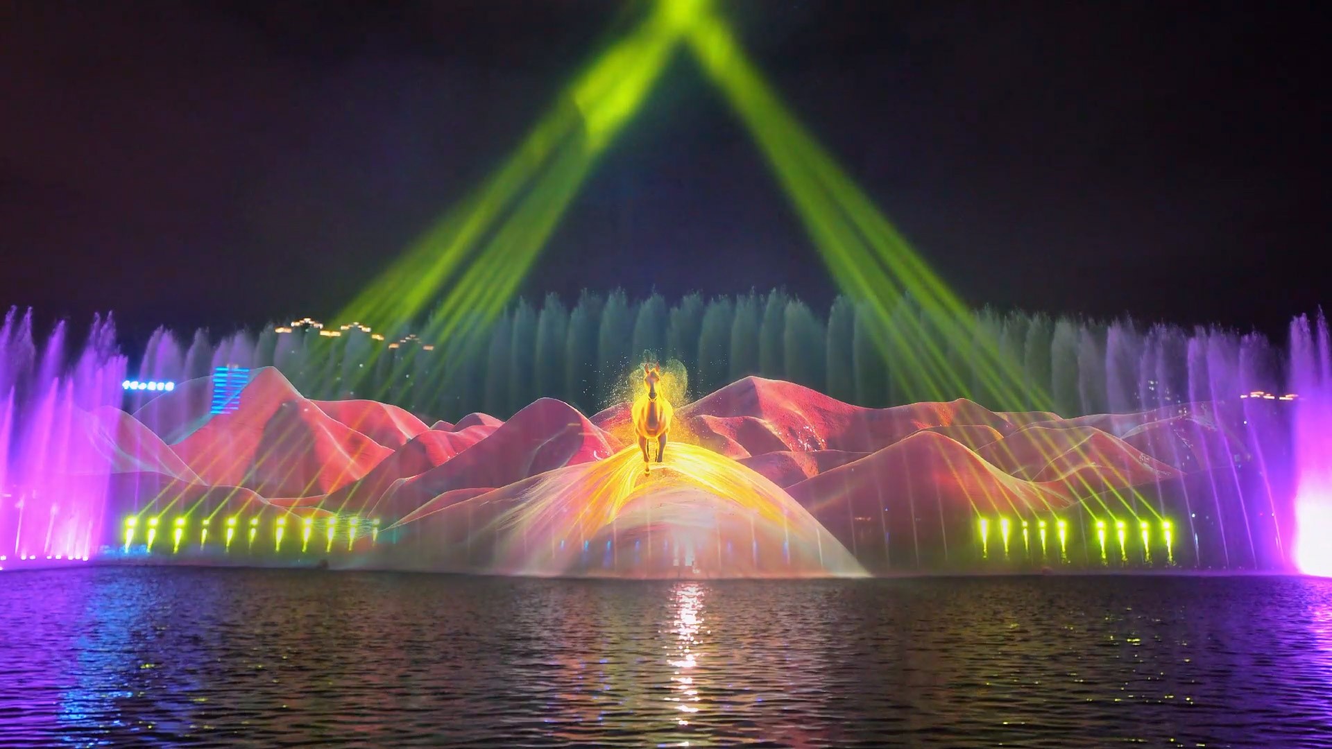 在湖南郴州北湖公园,我们创作了一部水幕电影大秀。如诗如画的自然地貌,如小东江、莽山、高椅岭、仰天湖大草原等,成为创作的灵感源泉,艺术家们用心艺术化处理水幕特征,为游客呈现一场华丽的视觉盛宴。在这神奇的水幕背后,山川河流展露出迷人的姿色,仿佛从画卷中走出。小东江宛如一条银蛇盘绕山间,奔腾而下,掀起千层水雾,将阳光映照得五彩斑斓。莽山层峦叠嶂,苍翠的树木和飞瀑流泉交相辉映,宛若一幅立体的山水画。高椅岭屹立在山巅,俯瞰着郴州的美景,仿佛守护者般庄严而壮美。仰天湖大草原则宽广如海,绿草如茵,湖水清澈见底,倒映着蓝天白云,宛如一幅静谧的田园风光。水幕艺术巧妙地将这些景致融入其中,透过清澈的水幕,观众仿佛置身于山水之间,感受到大自然的魅力与神秘。水幕成为一面奇妙的画布,艺术家们将湖南的美景以梦幻般的方式展现,绘就了一幅幅令人陶醉的画卷。光影交错之间,山水相连,自然与艺术相融,勾勒出一幅郴州的诗意风景图,让人们沉浸其中,流连忘返。